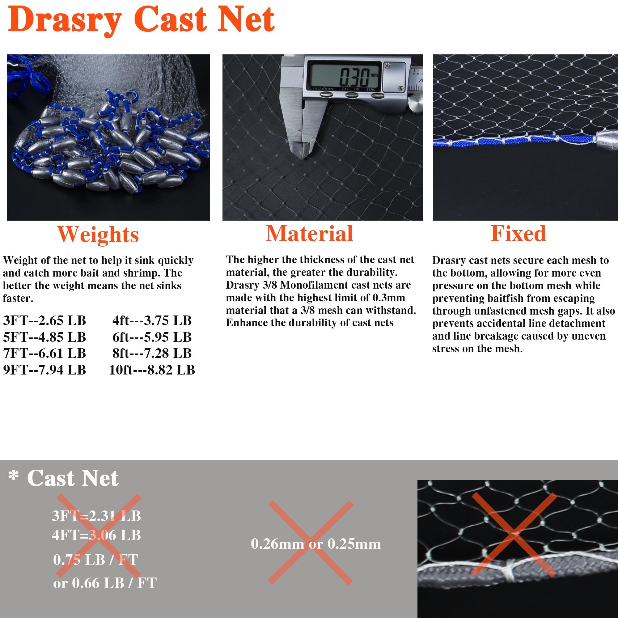 - 🐟HANDMADE:Durable and copolymer monofilament mesh, easy to throw. Quality craftsmanship and materials make this product an essential product for any fisherman
