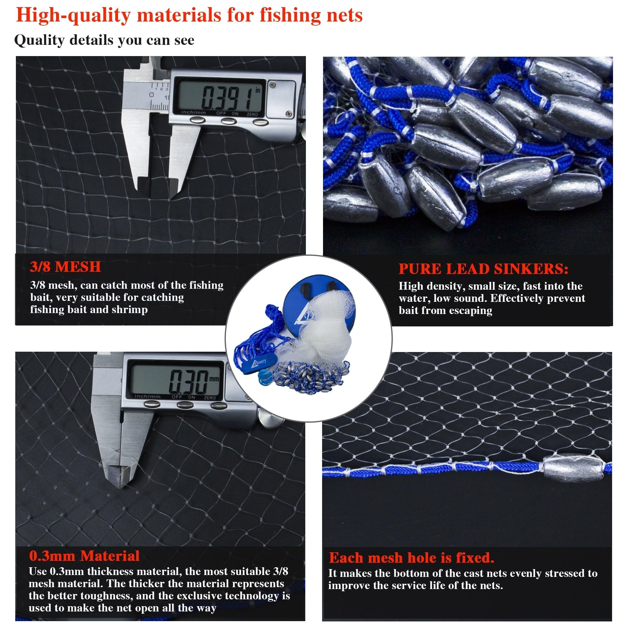 ►Better weight, making the cast net sink quickly, catch more baits.