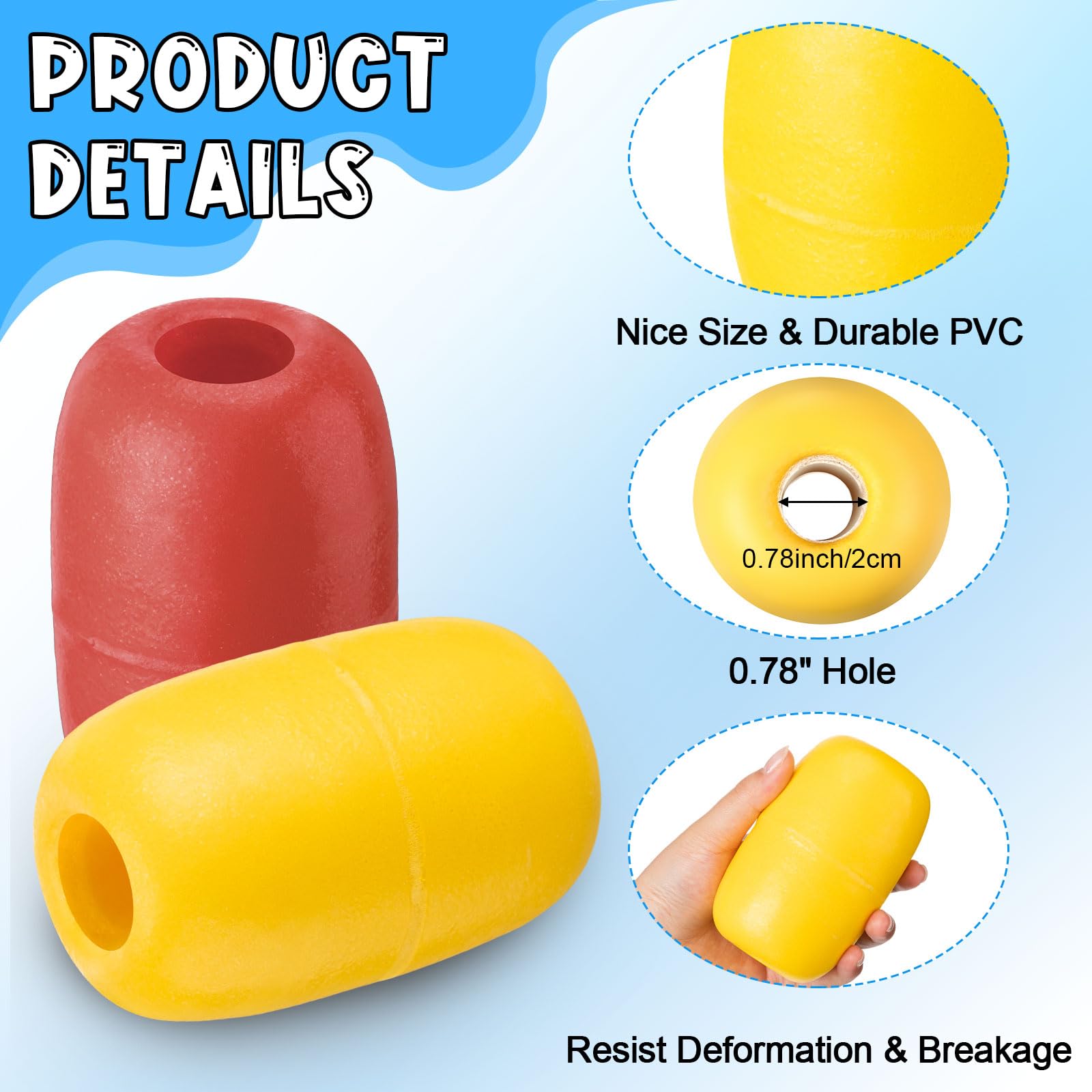 - Ensured Floatability: the crab buoys floats are sized at about 2.75 x 5.1 inches/ 7 x 13 cm, the hole diameter is about 0.78 inch and designed with closed cell foam; Their high density ensures good floatability; With a single buoy buoyancy of 270g and a total buoyancy of 3.24 kg for the set of 12, it reliably keeps your buoys afloat even for commercial fishermen and leisure boaters