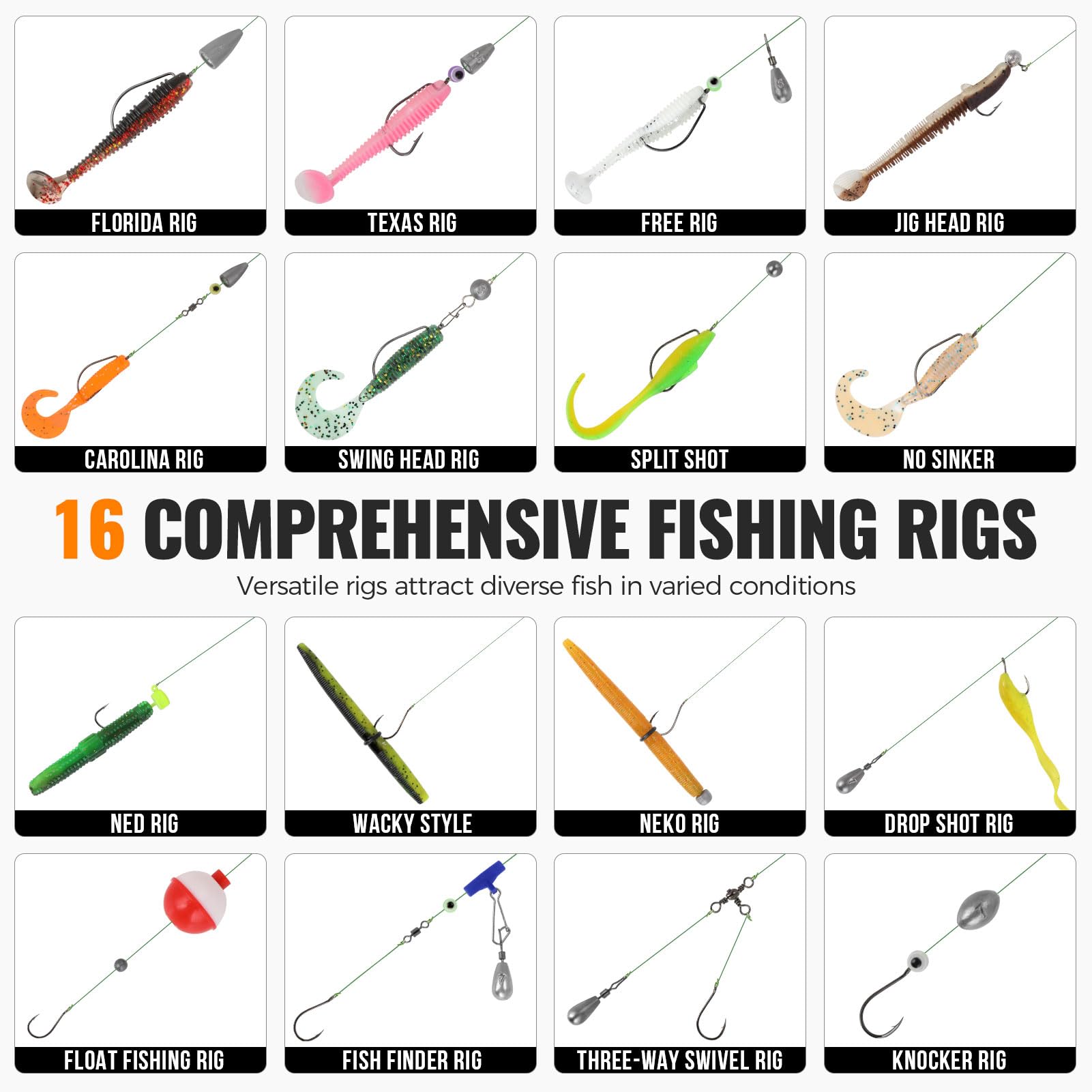 - 【Enhanced Comprehensive Fishing Tackle】 - The upgraded 2024 fishing tackle kit offers a comprehensive set of 16 fishing rigs, a 50% increase compared to standard tackle box kit. The expanded selection includes 12 lure rigs and 4 bait rigs, and the kit features an impressive lineup of rigs, including Texas, Carolina, Florida, Wacky, Drop Shot, Jig Head, and Ned rigs, catering to the needs of bass and other freshwater fish. This makes it an all-inclusive upgrade for your fishing adventures.