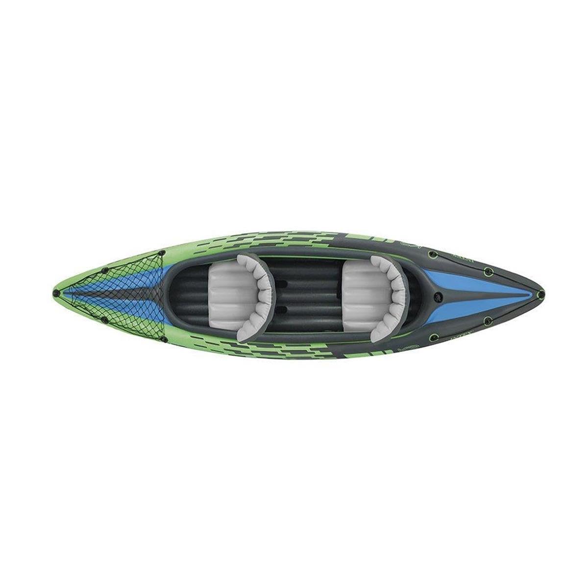 The Intex Challenger K2 Kayak is sporty and fun with a streamlined design for easy paddling. The bright green color and sporty graphics make the kayak highly visible in the water. Great for experiencing lakes and mild rivers, this Sports Series kayak is perfect for two adults. Lightweight and compact, this kayak is very easy to assemble and with the Boston valve, it inflates and deflates in minutes. You can take the fun of kayaking wherever you go.