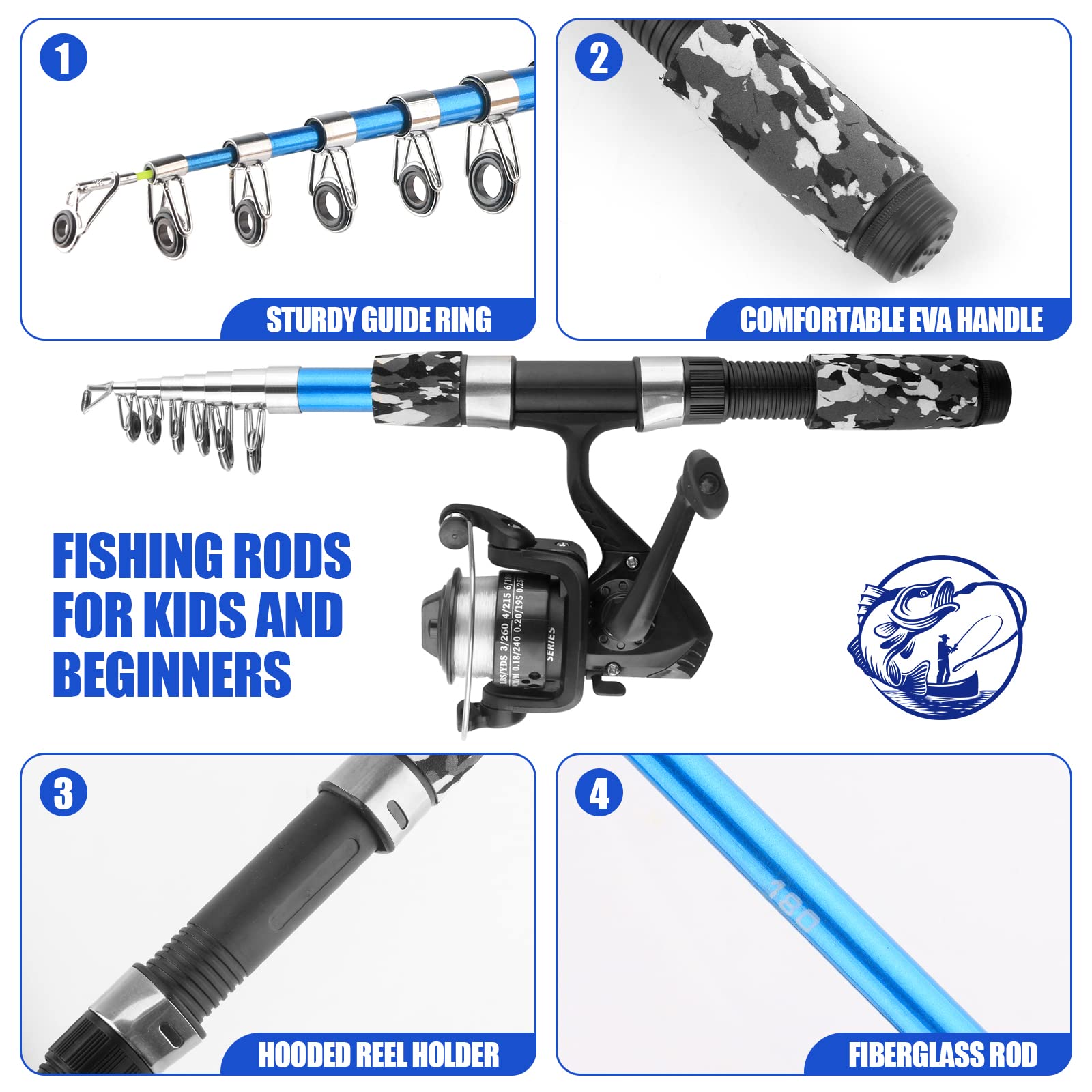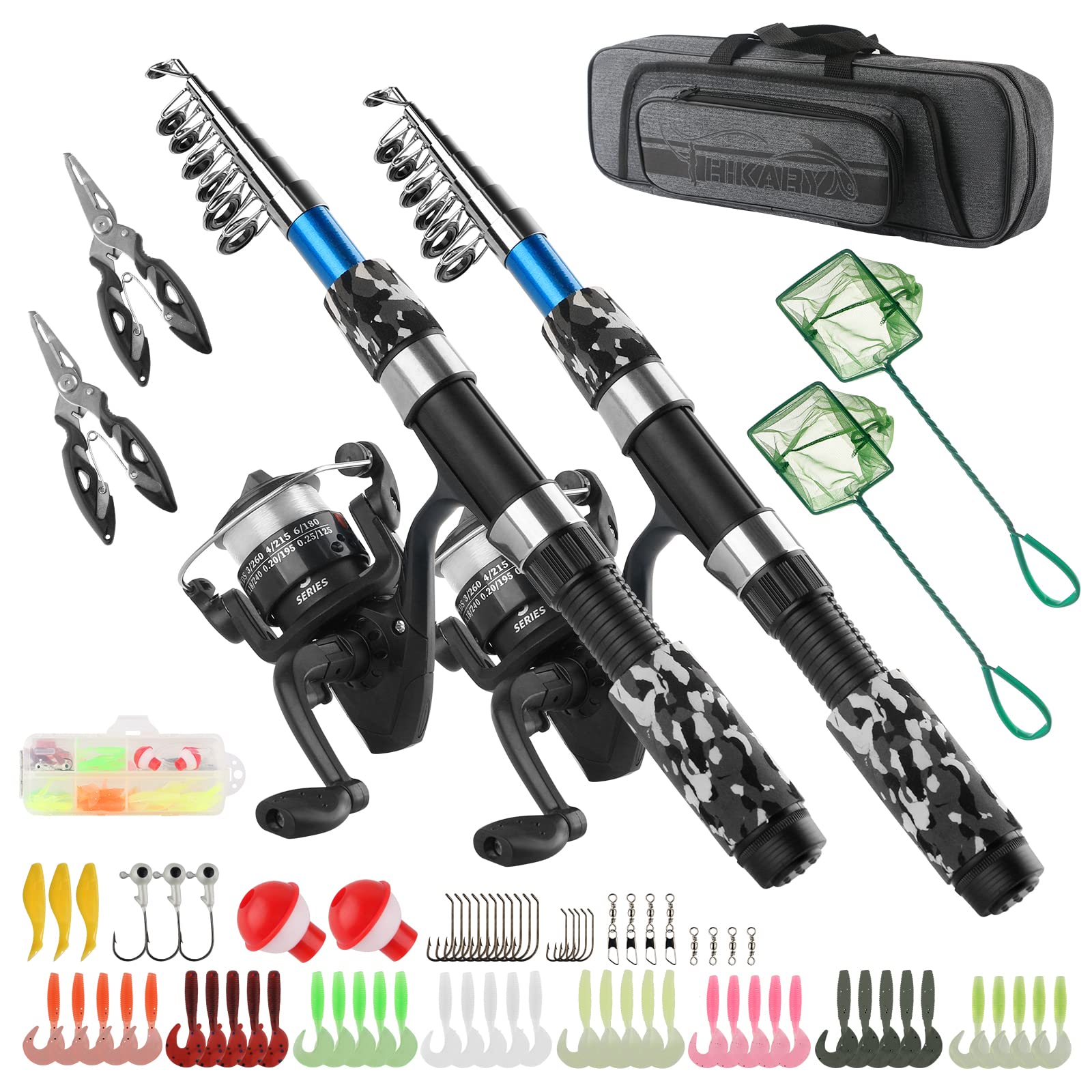 Details: Full kIt includes 2PCS 1.7m/5.6ft Telescopic Fishing Pole + 2 Fishing Reel with Line + 2PCS Mini Fishing Nets+Fishing Lures Baits + 2PCS fishing pliers+1 Carrier Bag.
