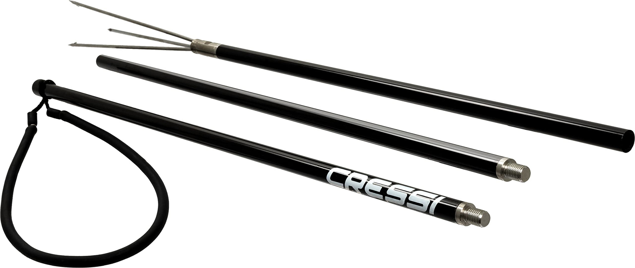 Details: The Aluminum Pole Spear is the perfect solution for traveling hunters. Threaded lightweight sections break down to fit in a typical dive bag and can be quickly assembled once at the dive site. Included is a five-prongs "Lionfish Cluster" tip and high-quality power band. Other tips are available as accessories, not included. The three pieces modular design is made up of two equal lengths of 26 5/16 in (66.8 cm), and one 19 7/8 in (50.5 cm) sections. Includes one 5 prongs cluster (paralyzer tip) length 0.5 ft. The overall length is 6.5 ft (200 cm). The diameter of the pole is 16 mm - 5/8 in. The AL3 Pole Spear is designed in Italy by Cressi and made in China. Cressi has been an Italian brand pioneer in scuba diving, snorkeling, and swimming equipment since 1946.