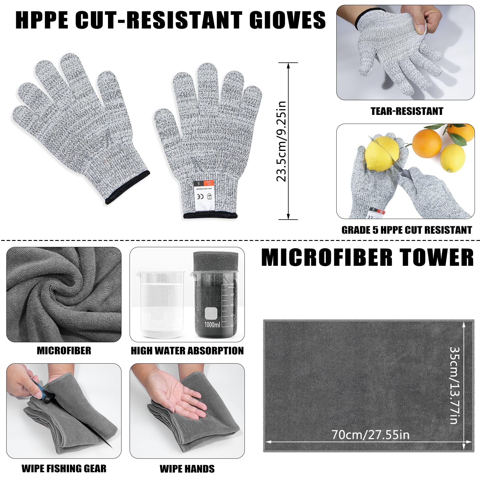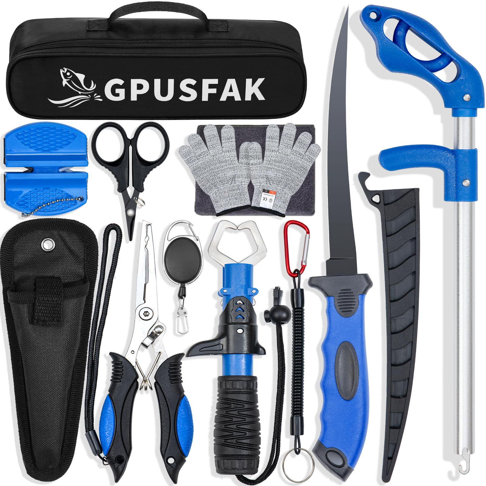 - Comprehensive Fishing Tool Kit: This stainless steel fishing gear contains 8-pieces essential fishing accessories, including 7" fishing pliers with sheath, 7" fishing fillet knife with Sharpener, 3.5" fishing line cutter, 9" fish lip gripper, anti-cutting gloves, slanyard and other accessories