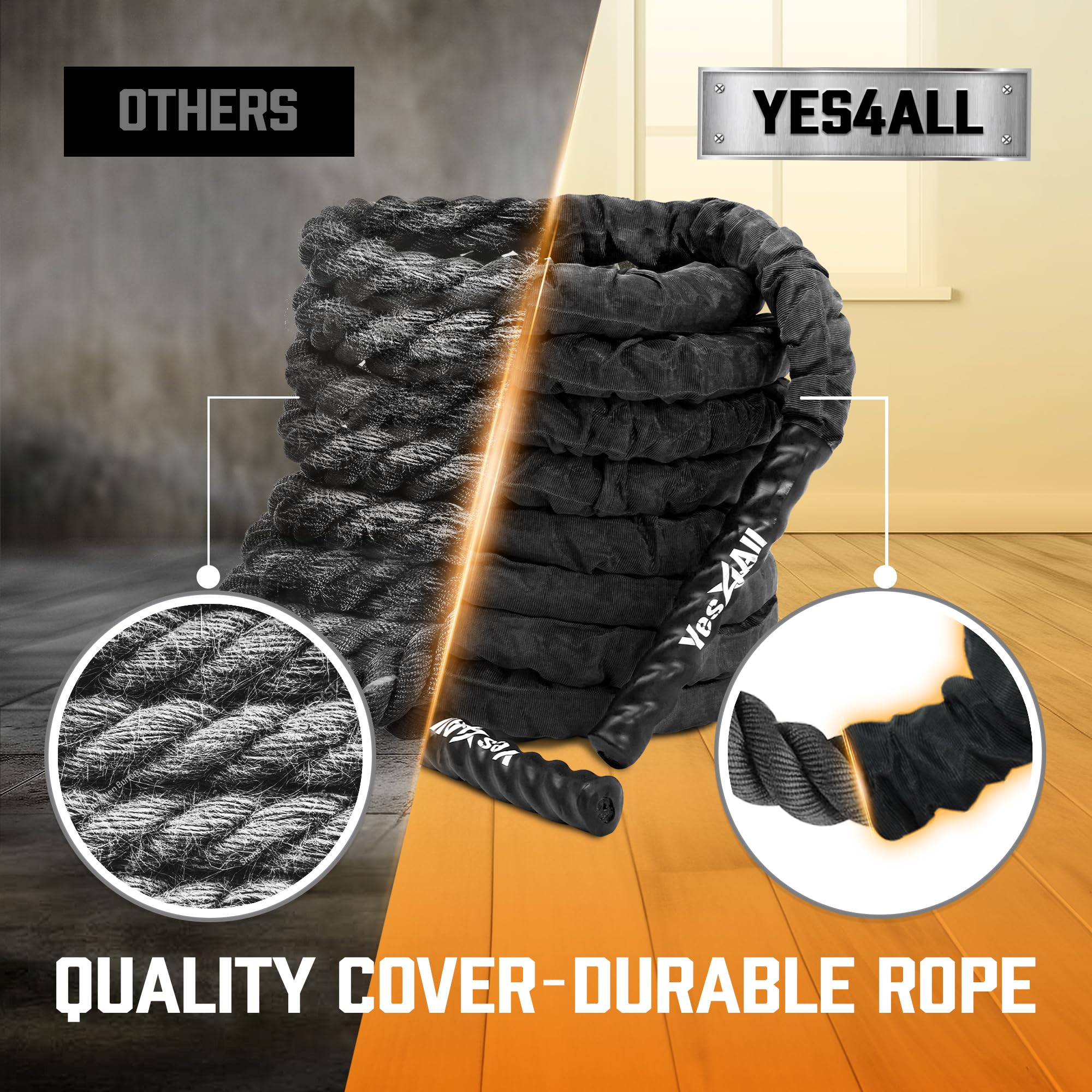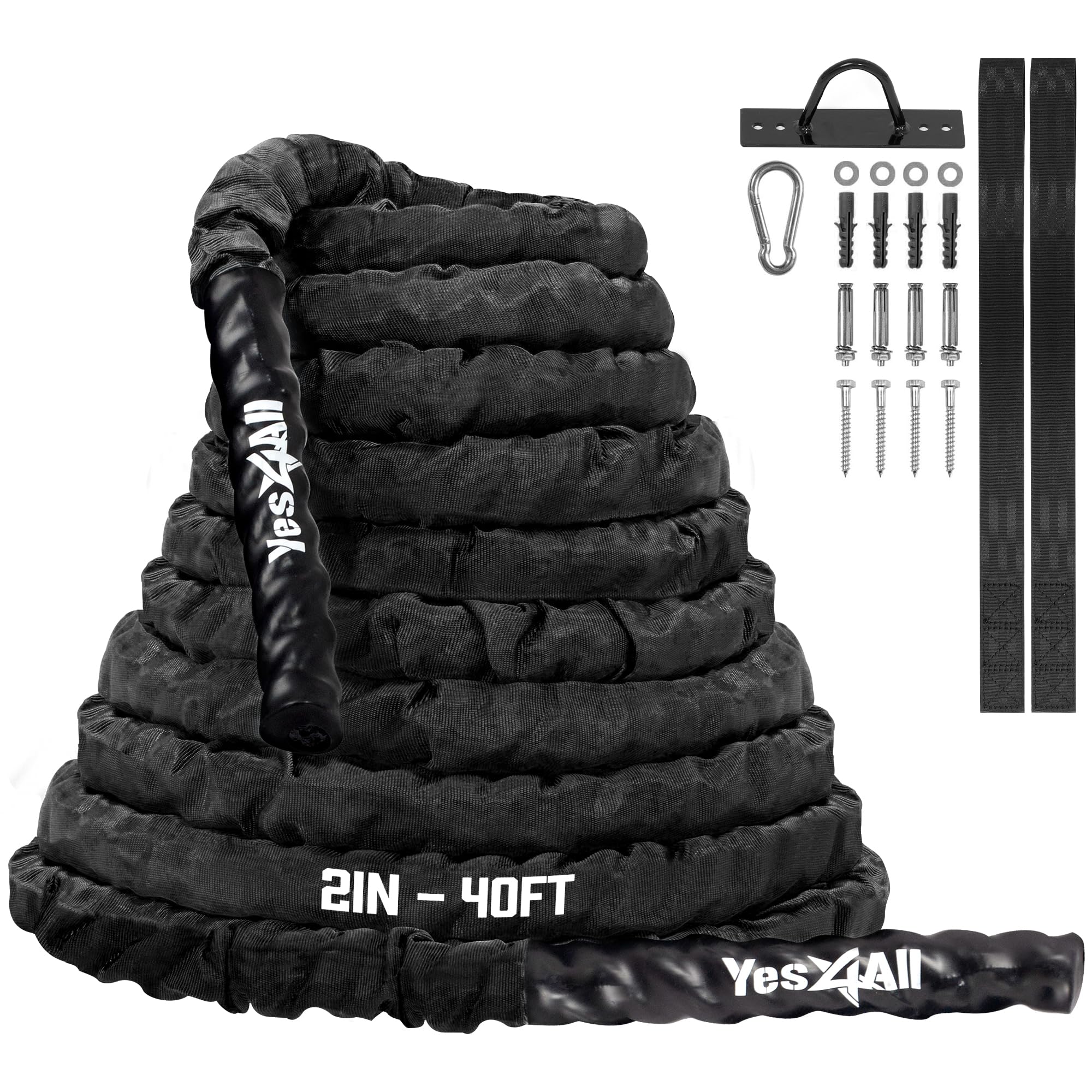 Yes4All Battle Rope with Protective Cover – Steel Anchor & Strap Included - Poly Dacron 2in - 40ft