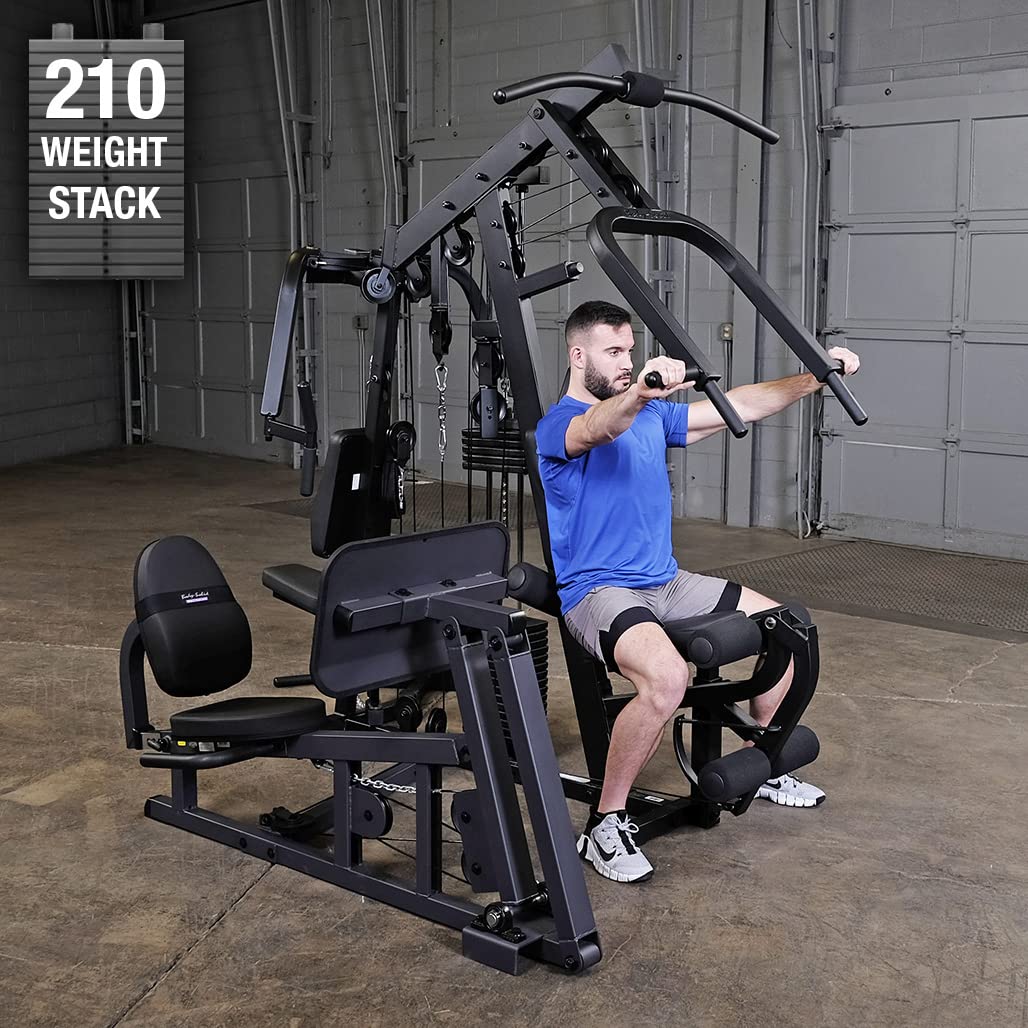 - 6 UNIQUE WORKOUT STATIONS: Multi-Press Station Lat Pulldown/High Pulley, Ab Crunch/Mid Pulley, Leg Extension/Leg Curl, Leg Press, Seated Row/Low Pulley which features a 210lbs. stack with state of the art nylon bushings for smooth and quiet operation.
