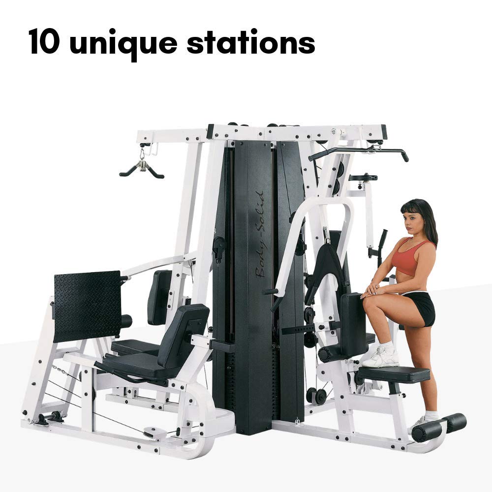 The EXM4000S is Body-Solid's ultimate gym package, offering total body workouts for three users simultaneously The Body-Solid EXM4000S Triple Stack Home Gym offers a dizzying array of upper and lower body exercises, enabling three users to workout simultaneously (or up to four with the optional Leg Press/Calf Press Station). The unit fits easily against a wall, with exercise stations fed by three 210-pound steel alloy weight stacks.
