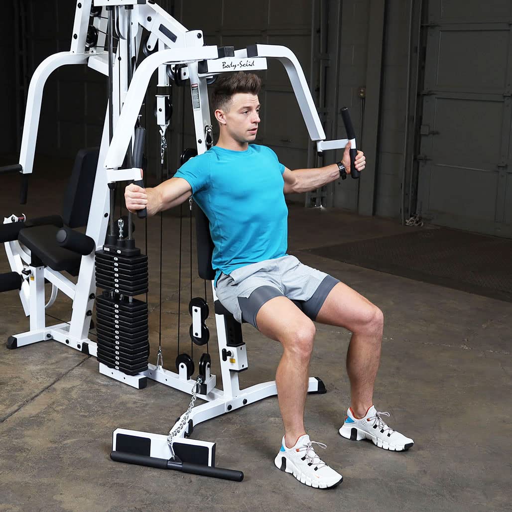 Details: A Consumer Magazines #1 Home Gym! Simple design, maximum performance and a minimum price were the blueprints used to develop the EXM2500S. Loaded with 210lbs. of cast iron resistance, the EXM2500S can perform your most demanding strength training routines. Muscular growth and definition are rapidly achieved throughout each of the precision built, biomechanically designed stations. Includes: Full Size Workout Poster, Let Bar, Straight Bar, Utility Strap, Ab/Triceps Strap Body-Solid Brand Gym Features: Heavy duty 2”x4” 12-gauge high tensile strength steel provides ultimate strength, function and durability. Thick Disaffirm Pads- With lumbar support, provides the ultimate comfort and prevents lower back strain. 2, 200 lb. tension strength, military spec, steel aircraft cables with nylon sheath provide durability and low maintenance. Powder Coat Finish- Tough, durable, electrostatically applied finish ensures against scratching, chipping and peeling. Body-Solid In Home Lifetime - Everything is covered forever. Specifications: Chest Press, Pectoral Fly, Rear Delta, Leg Extension, Leg Curl Upper Pulley- Let Pull Down, Cable Crossover, Ab Crunch, Triceps Extension and Press down. Lower Pulley-Deltoid Raise, Seated Row, Shrug, Bent-over Row, Standing Curl, Leg Adduction. 210lb. steel weight stack. 83"H x 51"W x 83"D. VERY IMPORTANT – CONTRACT FOR FREIGHT DELIVERY This item(s) is either over 150lbs. or in extra large boxes, and must ship by freight. You must read and accept freight requirements which are outlined below and will be emailed to you after purchase. Do not order this item if you cannot accept these terms. If you accept these terms and place the order, then cannot accommodate delivery, you will be held responsible for shipping charges, usually OVER $100. Be sure to update your PHONE NUMBER. Delivery takes place only on business hours MONDAY-FRIDAY. It is your responsibility to UNLOAD THE FREIGHT FROM THE TRUCK into your home or garage.