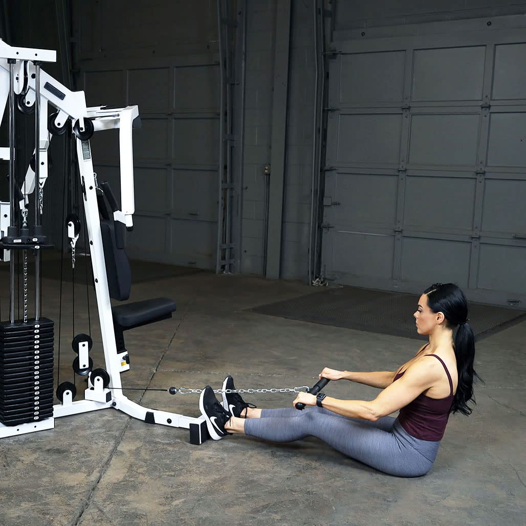 - INCLUDED ATTACHMENTS: Fully adjustable single-stack home gym workout machine featuring a no-cable change design lat pull down bar, low row bar, ab harness comfortable multi-position handgrips and adjustable hold-down pads to target several muscle groups (abs, biceps calves, delts forearms, glutes hamstrings, lats lower back, obliques pectorals, quads shoulders traps, tricepts and total body).