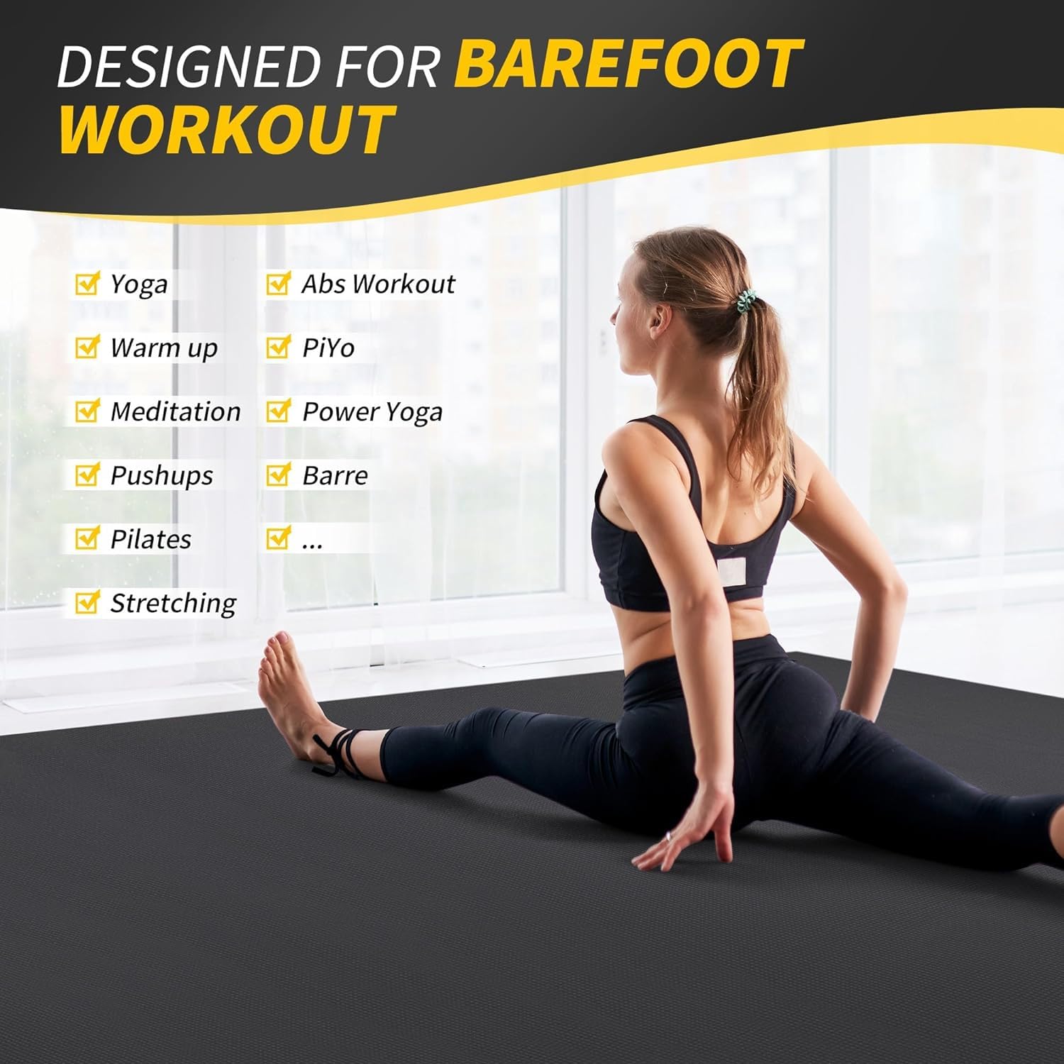 • Double-Sided non-Slip Design - Designed with double-sided non-slip surfaces, this large workout mat provides unparalleled grip to help you hold poses no matter what style of yoga you are practicing; the unique honeycomb bottom prevents the mat from sliding around on most floor surfaces