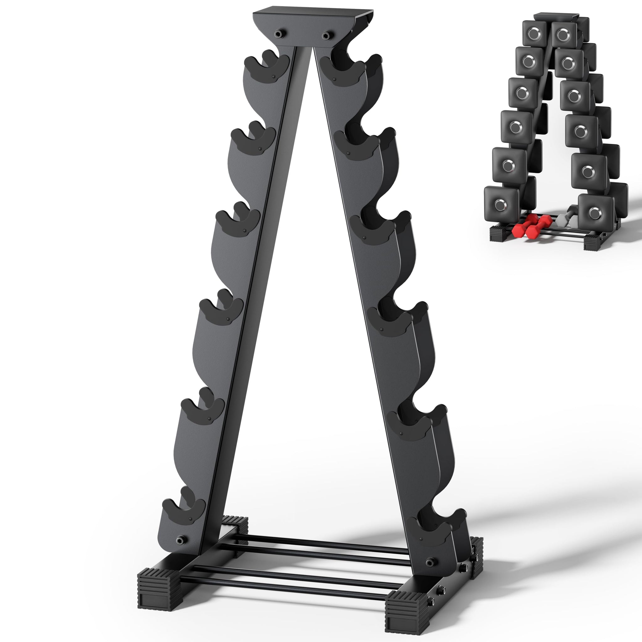 Dumbbell Rack Stand Only, Compatible with Peloton Weights, Ergonomic Dumbbell Organizer for Home Gym with 6-Tier, Space-Saving Weight Tree Rack, Plus Neoprene Set Storage, Compact