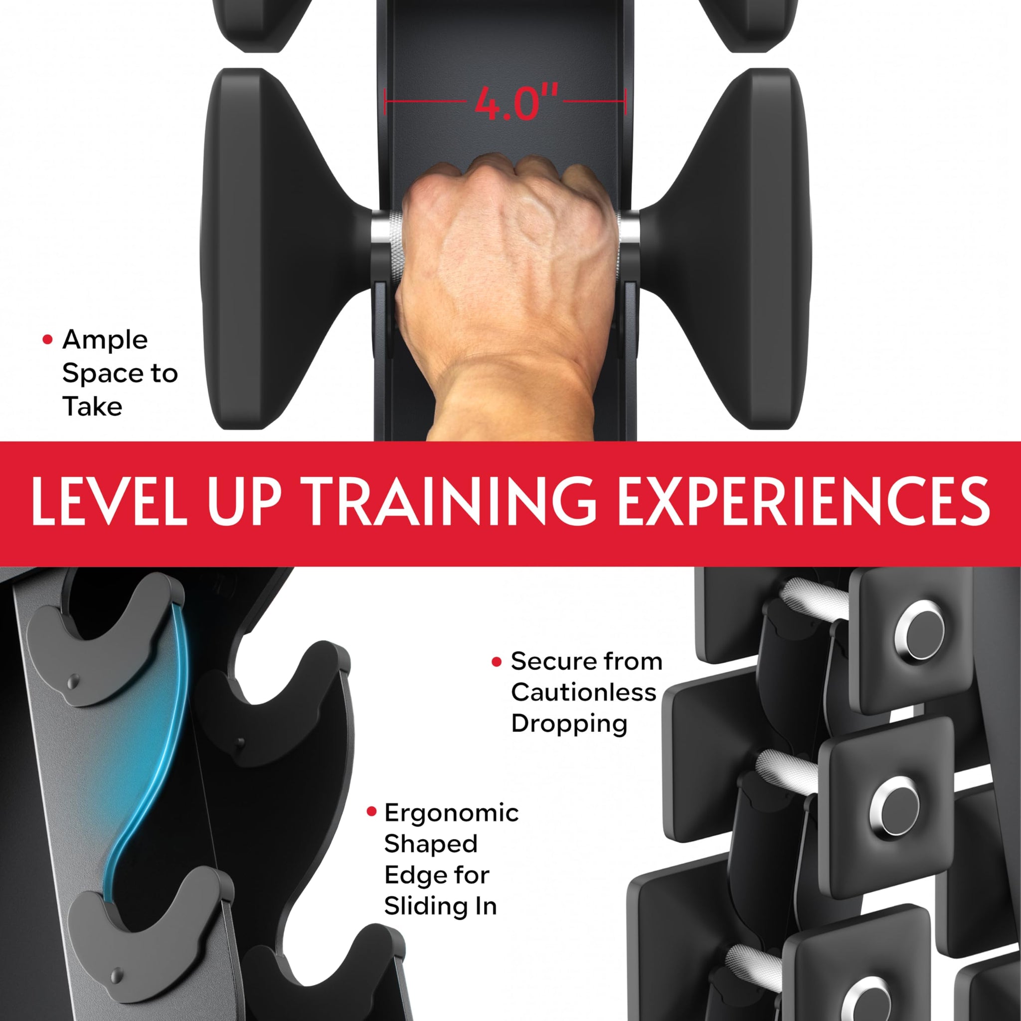 • Ergonomic Semi-Round Edge: Choosing the correct rack stand is important; our curved slot corners ensure a smooth re-racking experience, allowing you to effortlessly slide in weights; no more pinching in the fingers! Your hands deserve the best care
