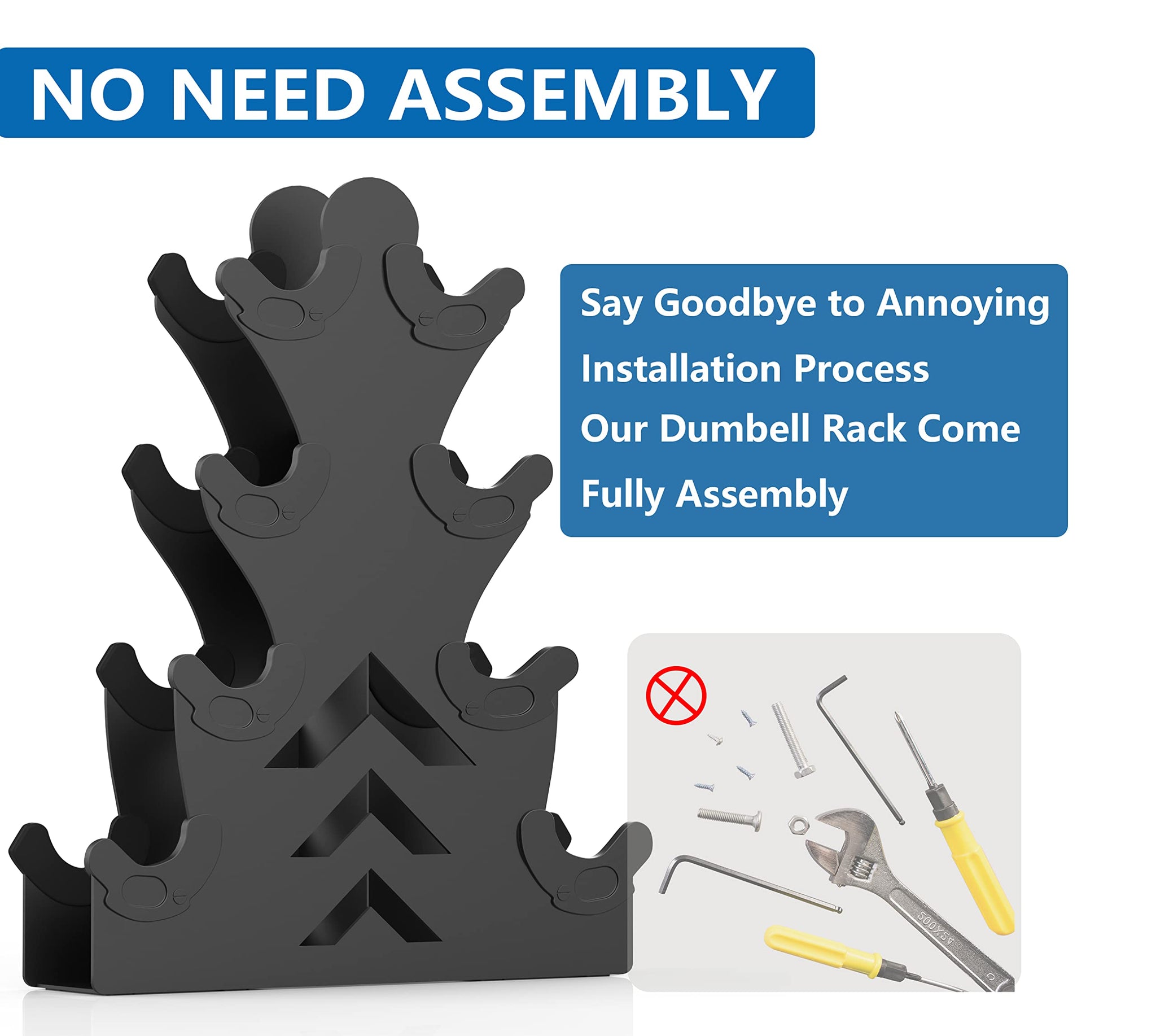 • No Need Assembly-Our dumbbell holder do not need assembly, say goodbye to troublesome install step, came ready to go,all you need to do is to take it out the box.Save your precious time