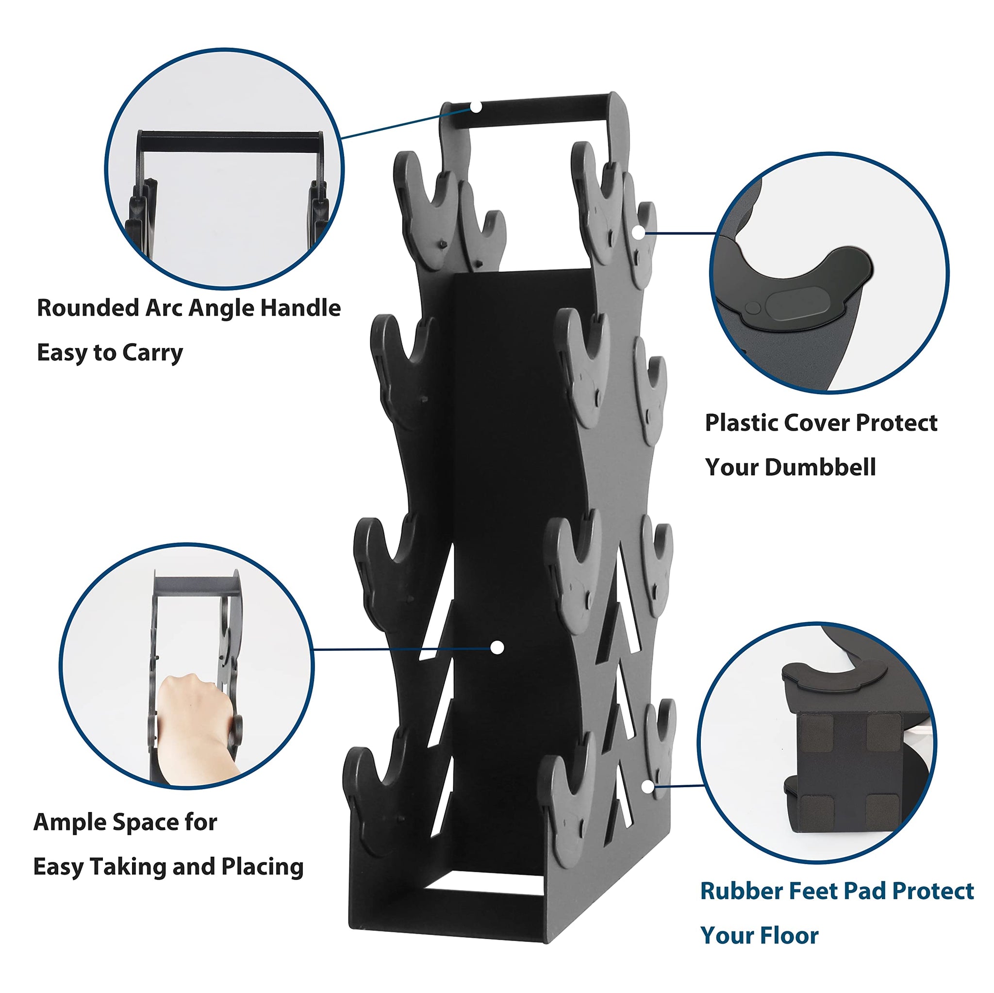 • Anti-Scrath Plastic Pad-Each Slot come with plastic pad. No just protect your precious dumbbells from being scratched, but also protect your hands when taking or putting on the dumbbells on the rack