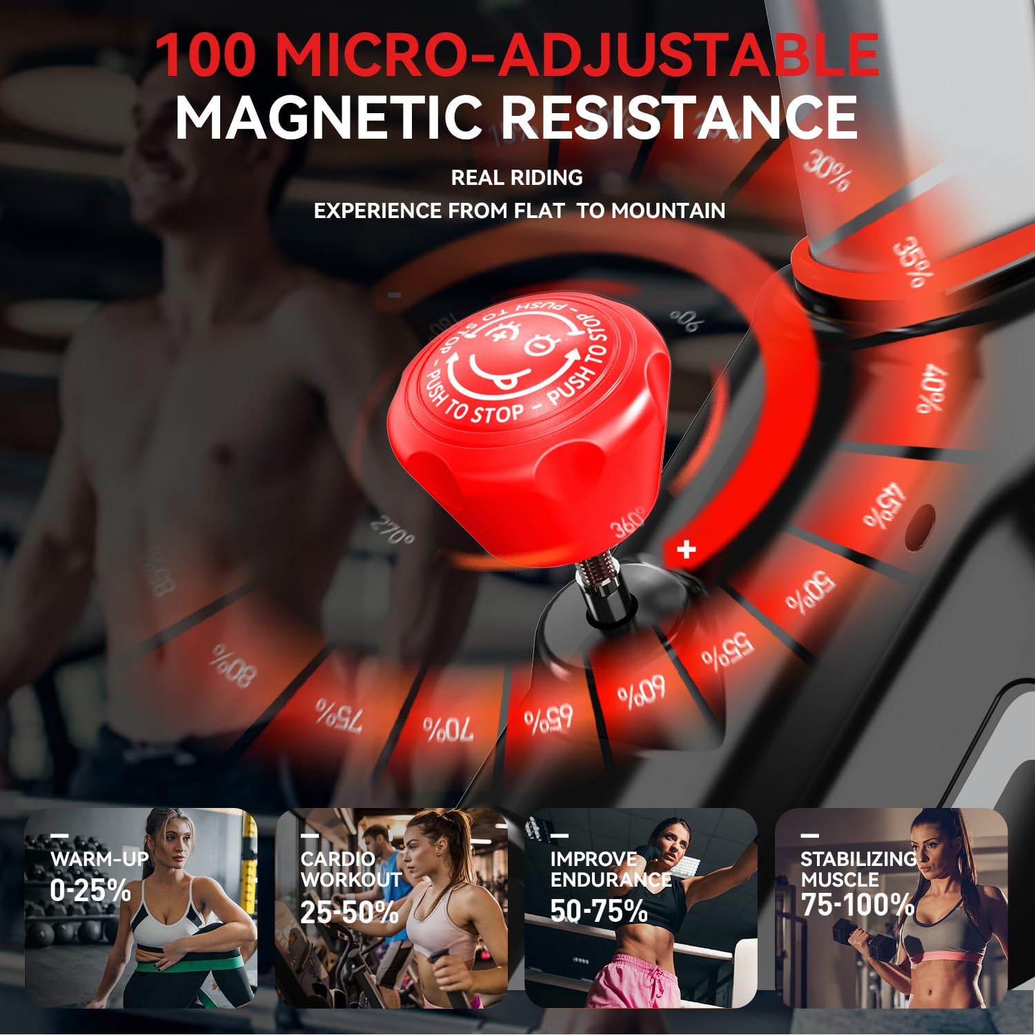 • 【Exercise Bike for Home】Heavy-duty steel frame of the exercise bike guarantee the stability while cycling. It supports up to 300 lbs max weight. Infinite resistance system and Belt Drive System can ensure that you are in a stable state during exercise.Provide a smooth and silent riding experience.