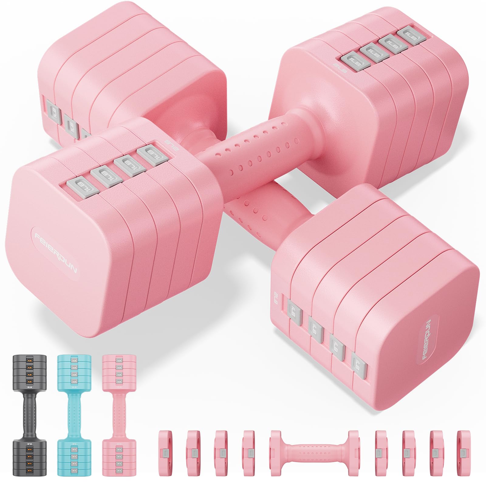 FEIERDUN Adjustable Dumbbell Set of 2, Each 2/4/6/8/10 lbs Weight for Women, Quick Adjust Weight, Double Locking Protection, Versatile Hand Weights for Home Gym & Outdoor Exercise