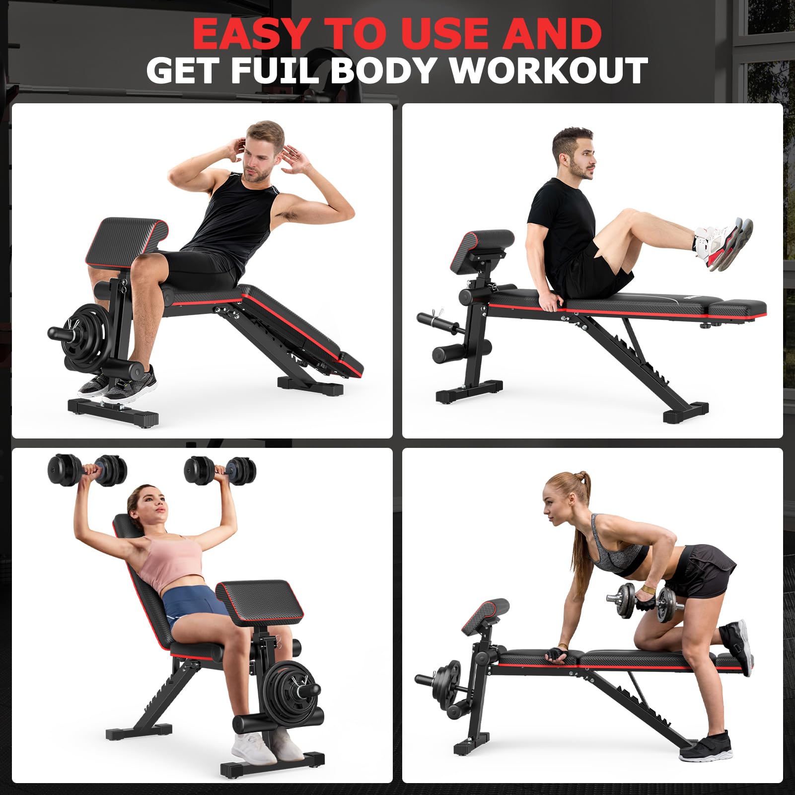 Foldable Workout Bench with Leg Extension, Adjustable Weight Bench w/Preacher Culr, Extended Headrest, Collapsible Bench for Home Gym Strength Training Exercise Full Body Banco de Pesas 880LBS