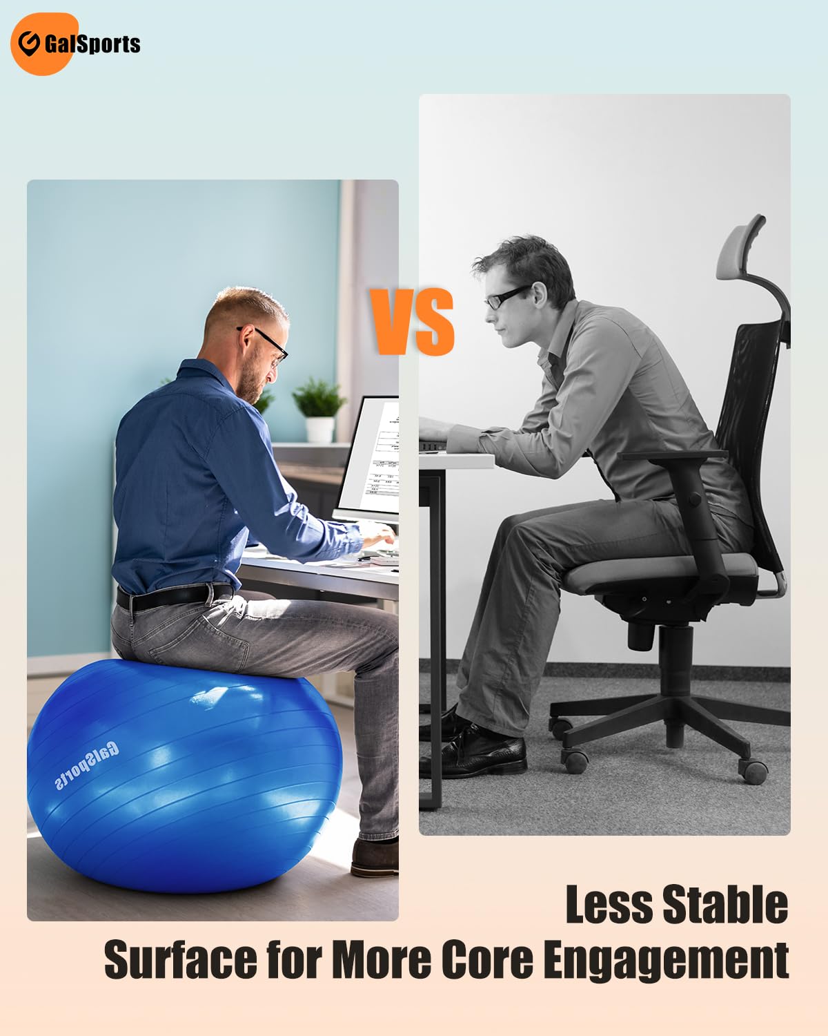 • 【1 Ball, Multiple Uses】The Galsports stability ball works wonders in relieving your lower back pain by strengthening your core and back. Use it to also work other various parts of your body, enjoy heavenly pre/post-workout stretches, and improve your posture with ease!