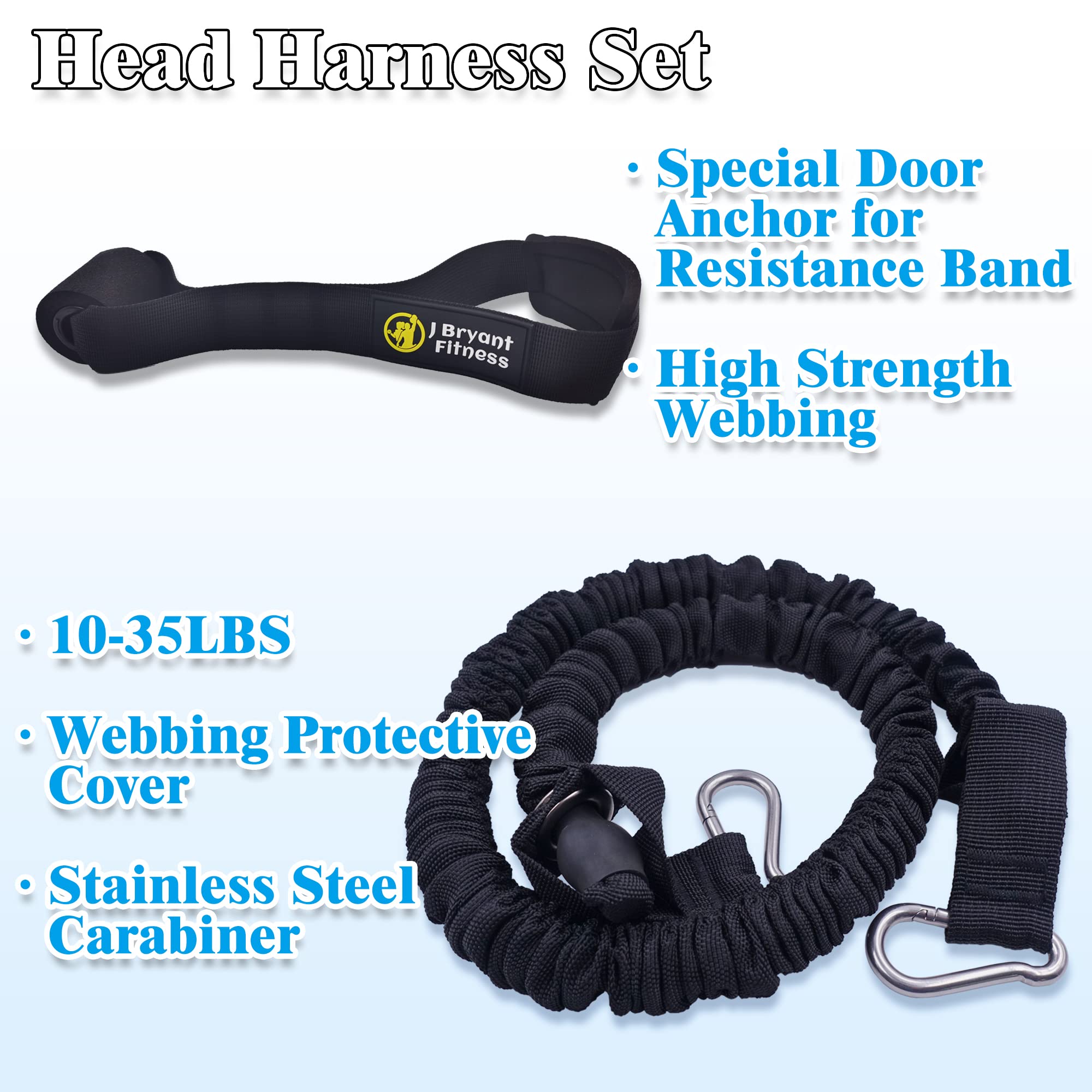 - 2.Package includes: 1pc * Training Head Harness Strap, 2pcs * Weight Loading Strap, 1pc * (10-35lbs) Weighted Resistance Bands, 2pcs * Stainless Steel Carabiners, 1pc * J Bryant Door Anchor.