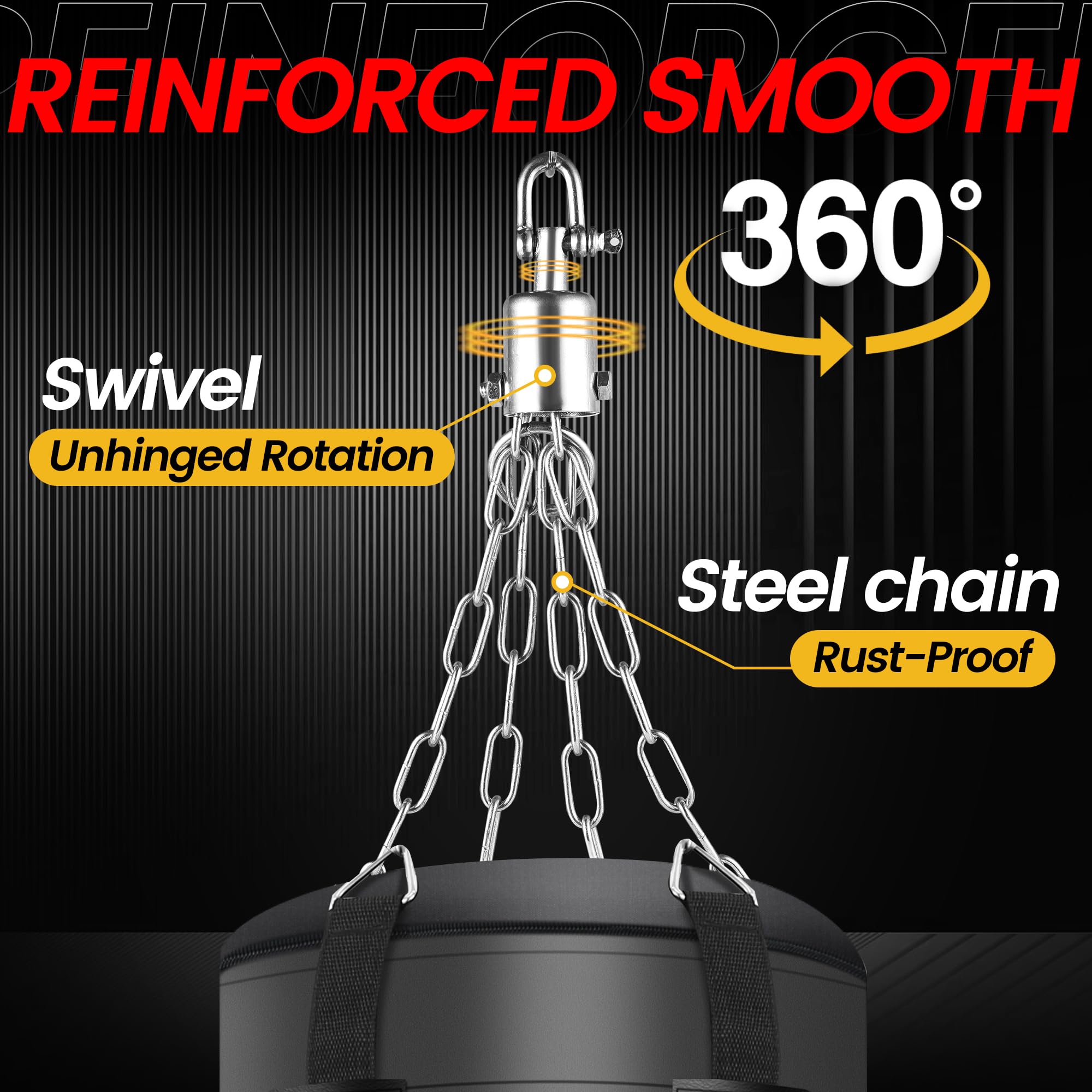 • 360° Swivel and Sturdy Hanger:Unique 360° Swivel keeps the bag rebound freely after being hit. free hanging and detachable, easy to assemble,Equipped with reinforced bag hanger, 4 expansion bolts and a carabiner, it can hold up to 1000LB! Start your boxing training!