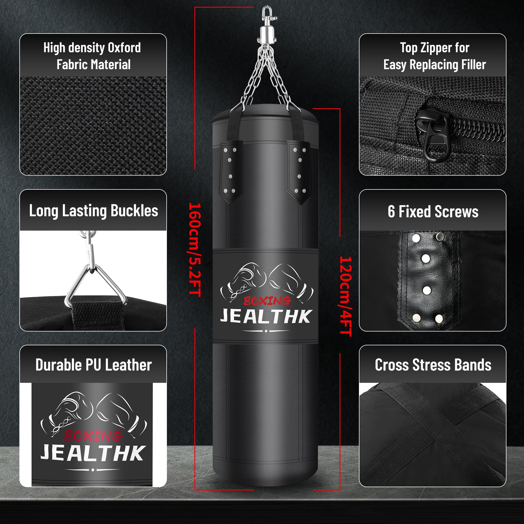 JEALTHK 4FT High-Density Oxford Fabric Unfilled Punching Bag for Adults. Boxing Training Equipment with 12OZ Gloves for Boxing MMA Kickboxing Karate Muay Thai Home Gym Training