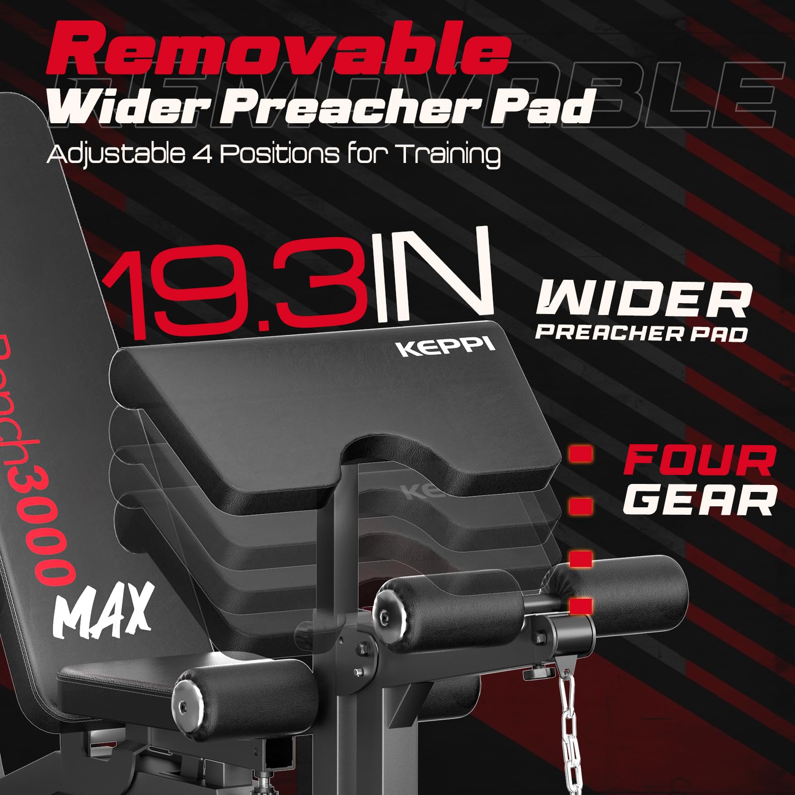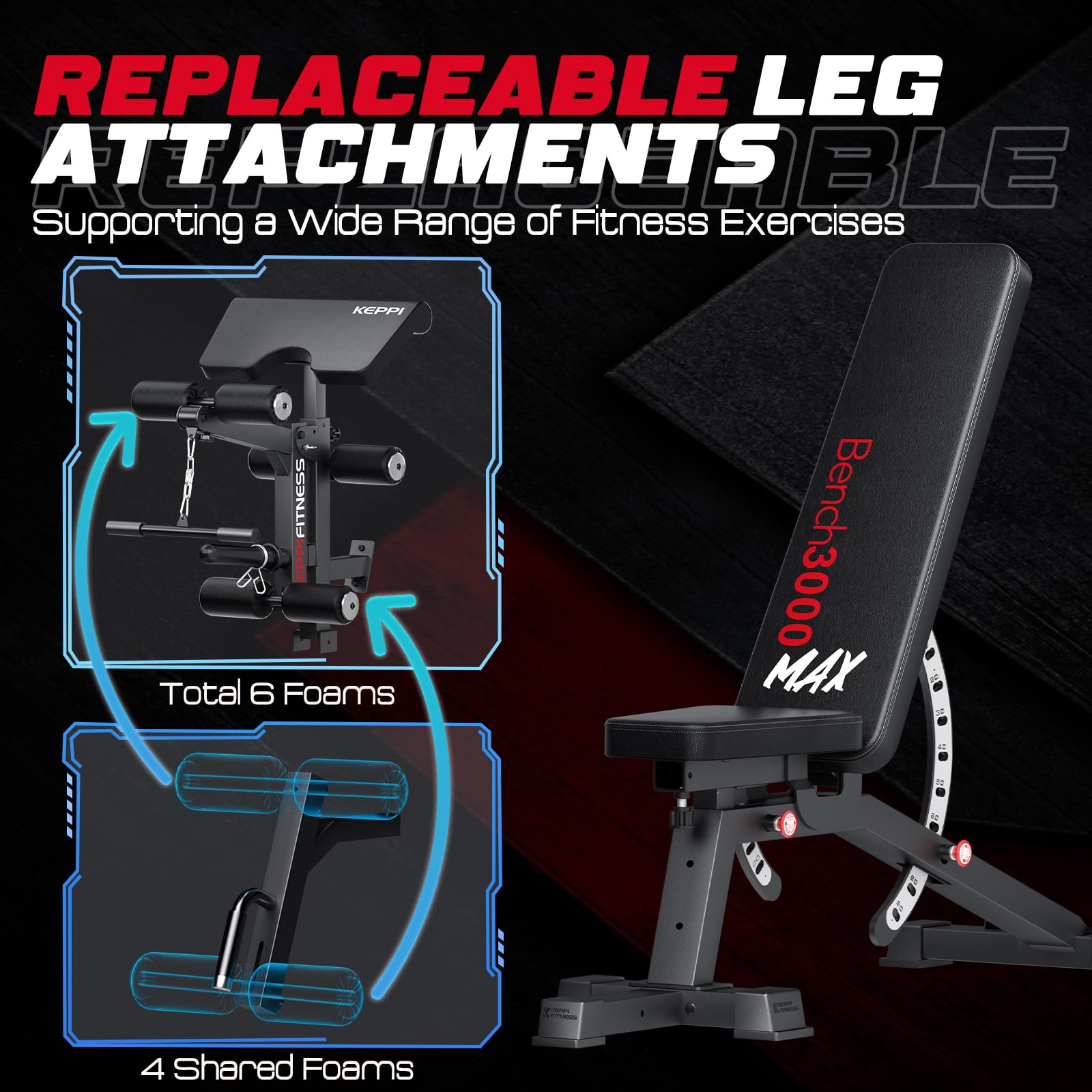 KeppiFitness Adjustable Weight Bench, Bench3000 MAX Heavy Duty Workout Bench Press with Leg Extension and Preacher Pad for Home Gym Fitness, Flat Incline Decline Sit Up Bench