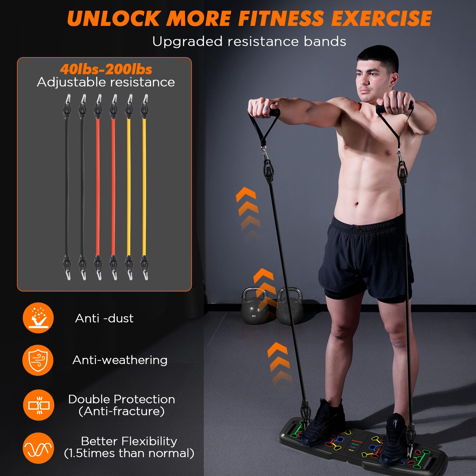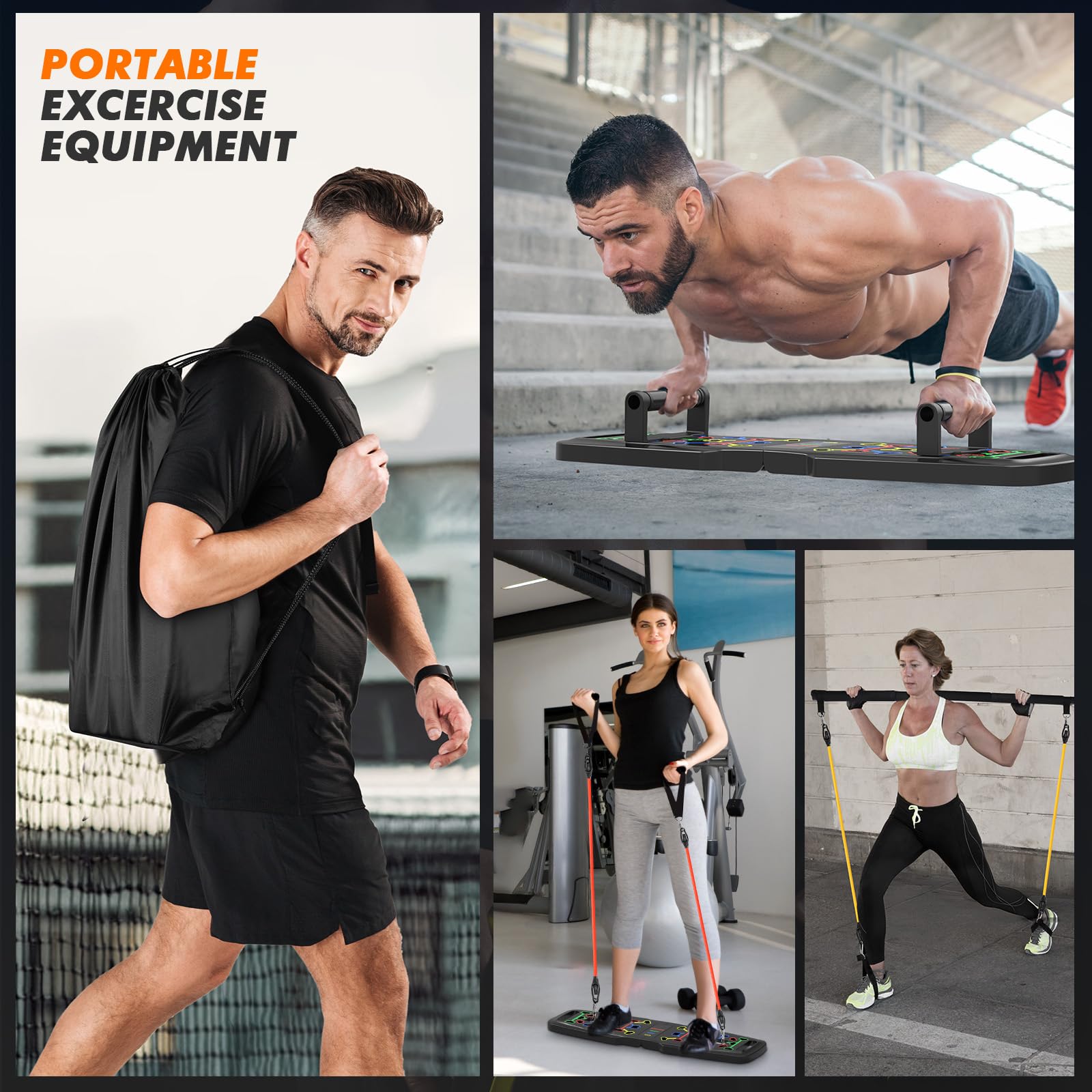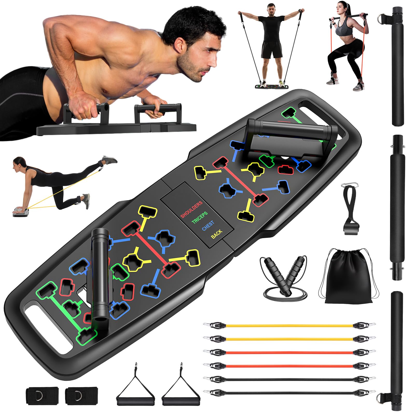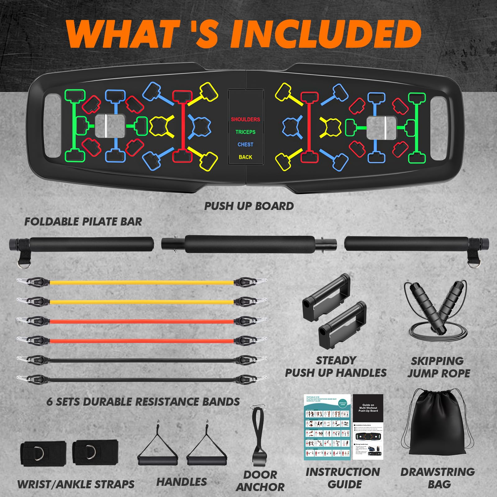 KUYOU Portable Home Gym Workout Equipment, Push Up Board, Pilates Bar & Fitness Accessories with Resistance Bands for Upper Body Strength Training Full Body Workout at Home