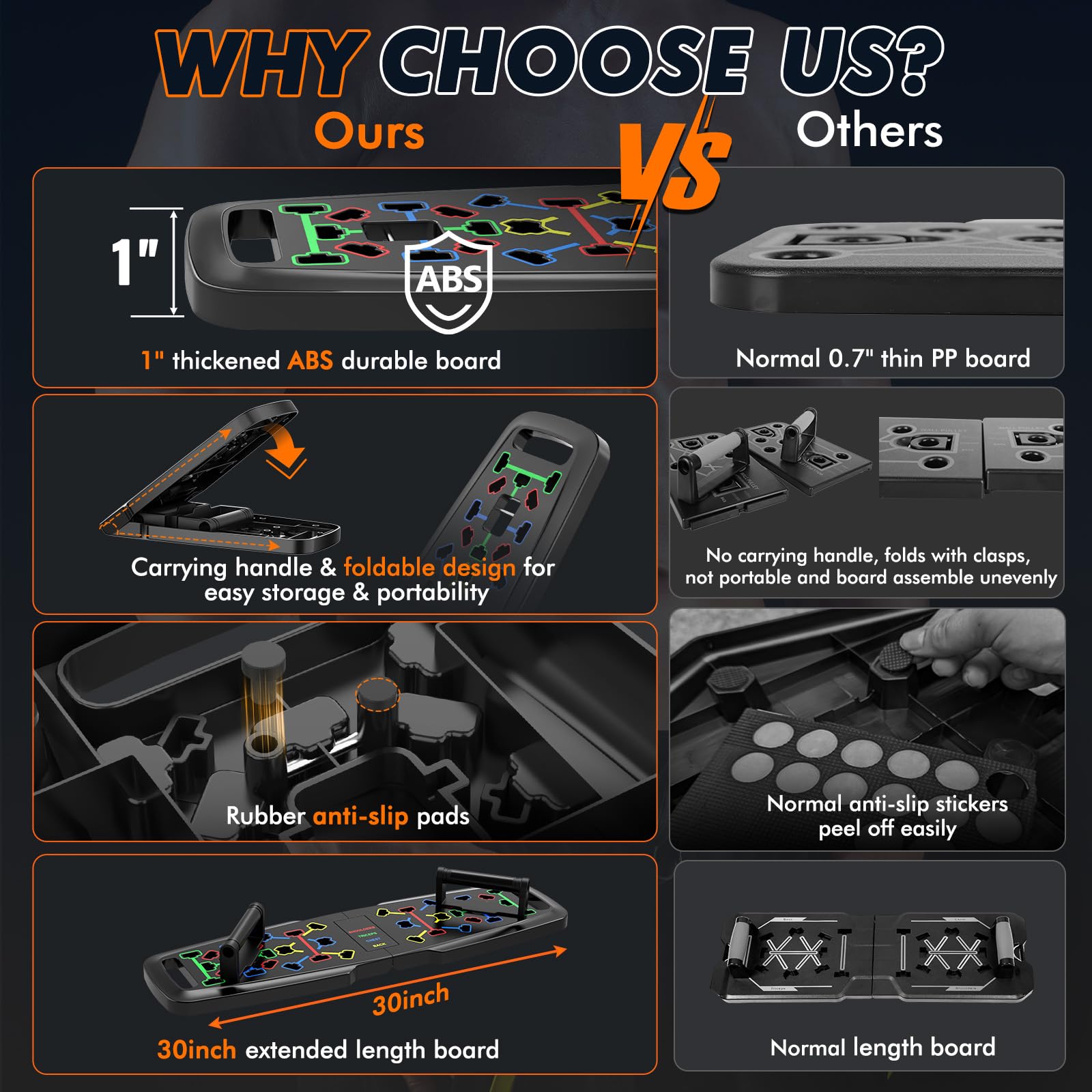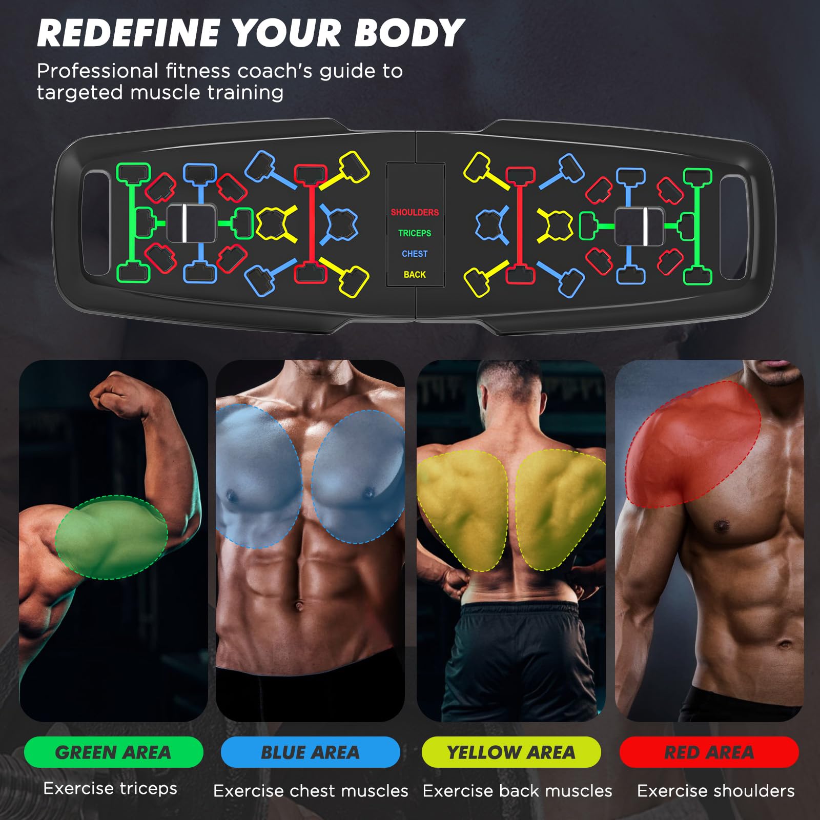 • 【Multifunctional Home Gym】:This foldable muscle max push up board is color-coded in order to provide multiple highly effective push up postures.KUYOU workout equipment home gym is specifically designed to target different muscle groups (chest, shoulder, triceps, and back), while engaging your core. Scientifically proven to activate 30% to 50% more muscle growth. Detailed instructions are provided with professional training guidance for maximizing your full body work out.