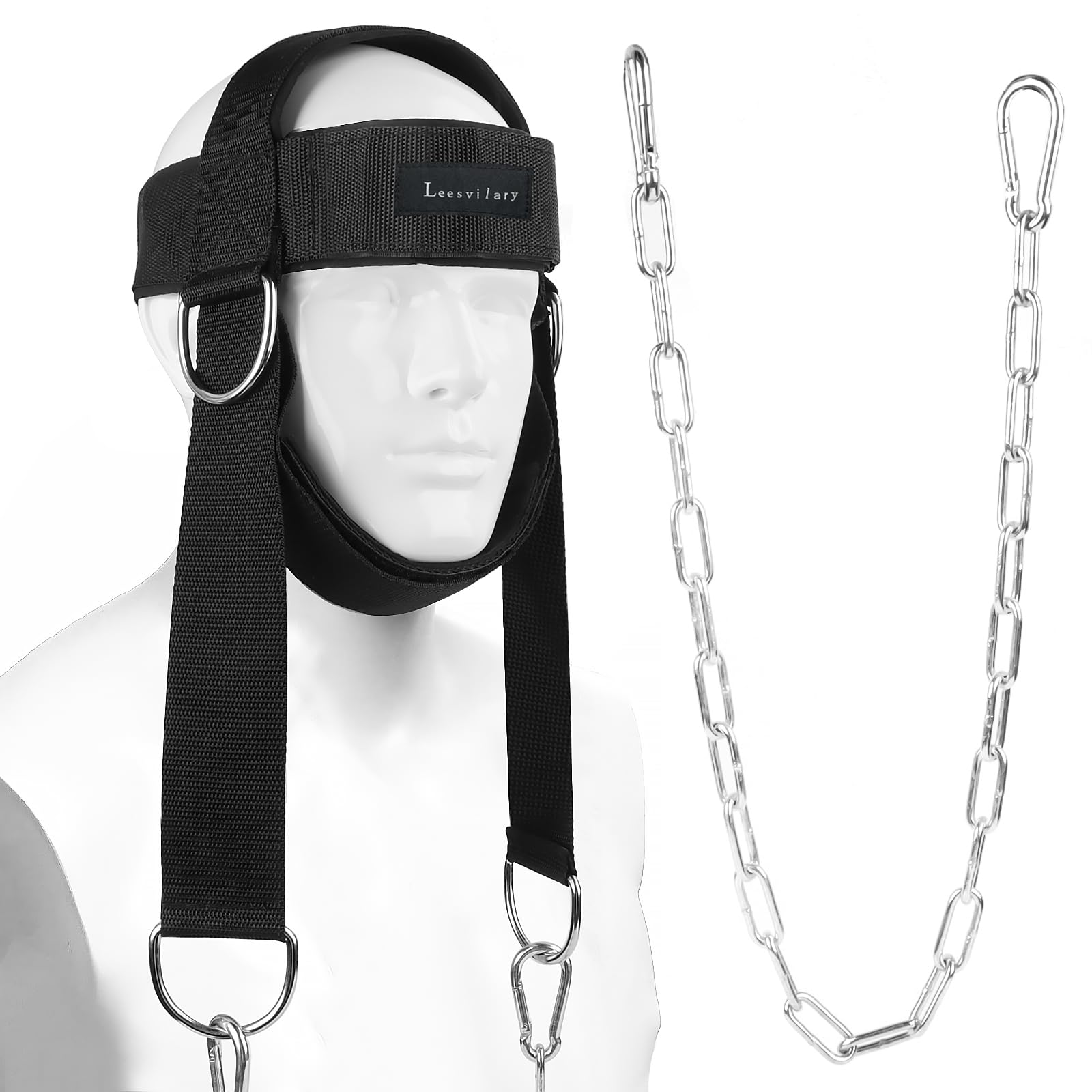 - D-rings in Two Locations: This neck trainer has two pairs of D-rings, one at the ear and one at the chin, which you can adjust on the fly for different movements and changes in weight loads to prevent injury!