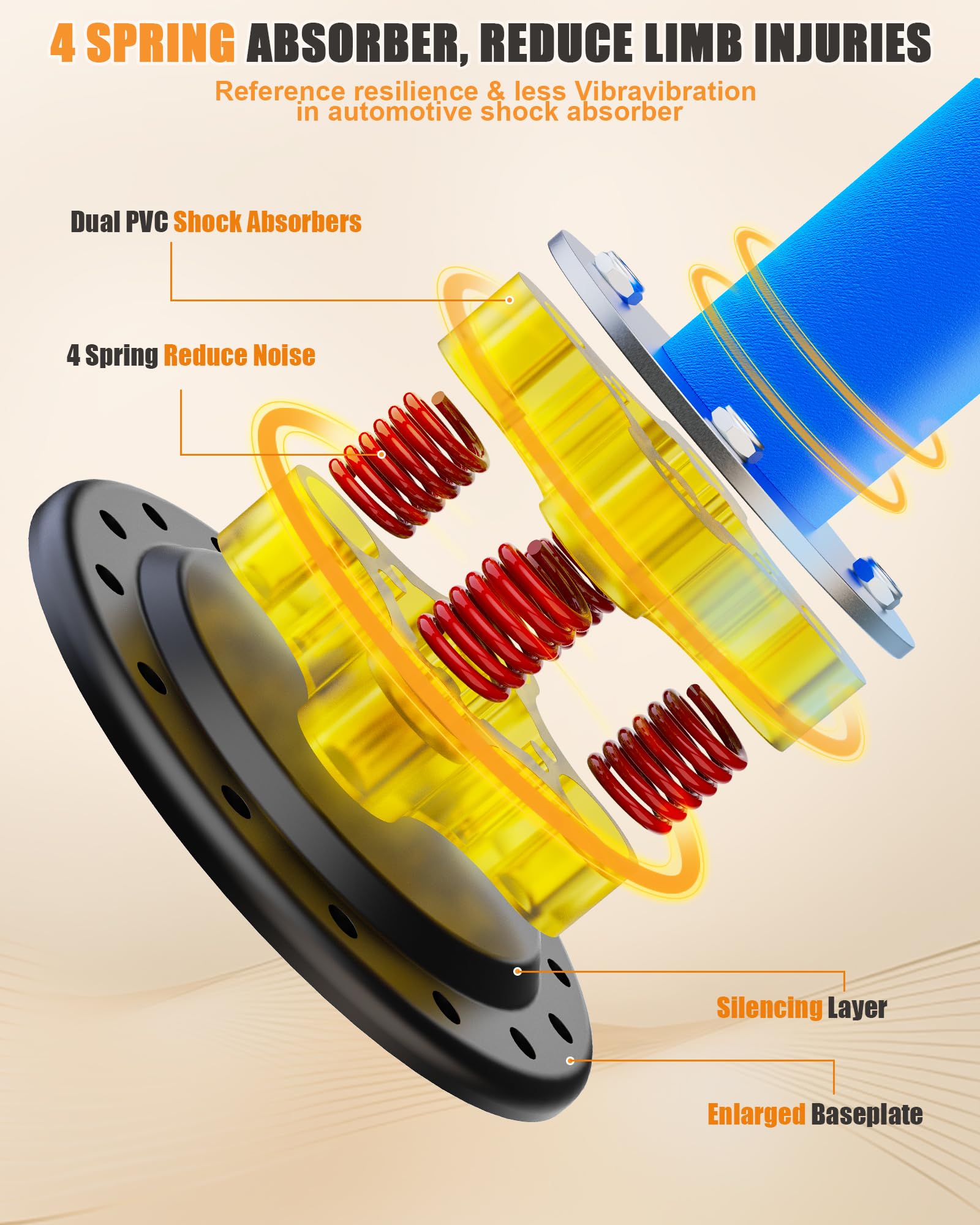 • Shock Absorption : Experience an advanced shock absorption system equipped with dual shock absorbers and 4 springs, delivering a 15-45° quick rebound angle and 360° vibration damping with noise absorption. To intensify strength training, simply remove the springs to reduce vibration absorption and increase resistance.