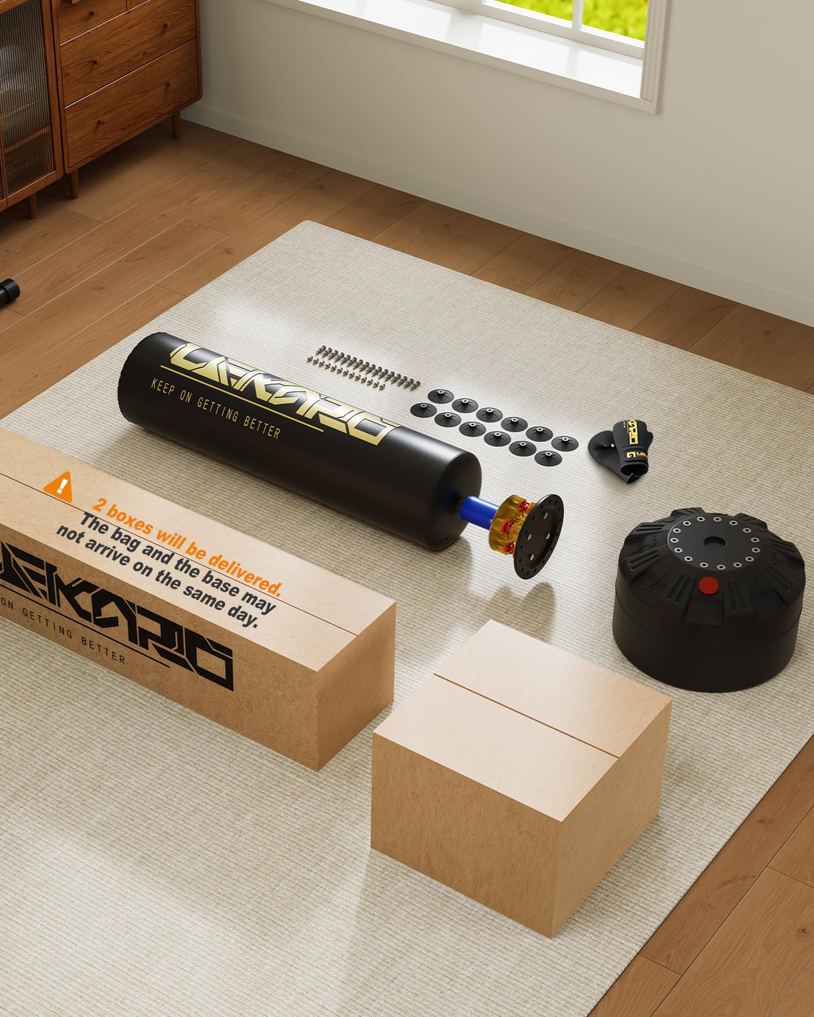 • Punching Bag with Stand : a complete set of boxing equipment, a freestanding punching bag and a pair of 12OZ boxing gloves. Note: You will receive two packages separately. Both packages will be shipped at the same time, but may not arrive on the same day.