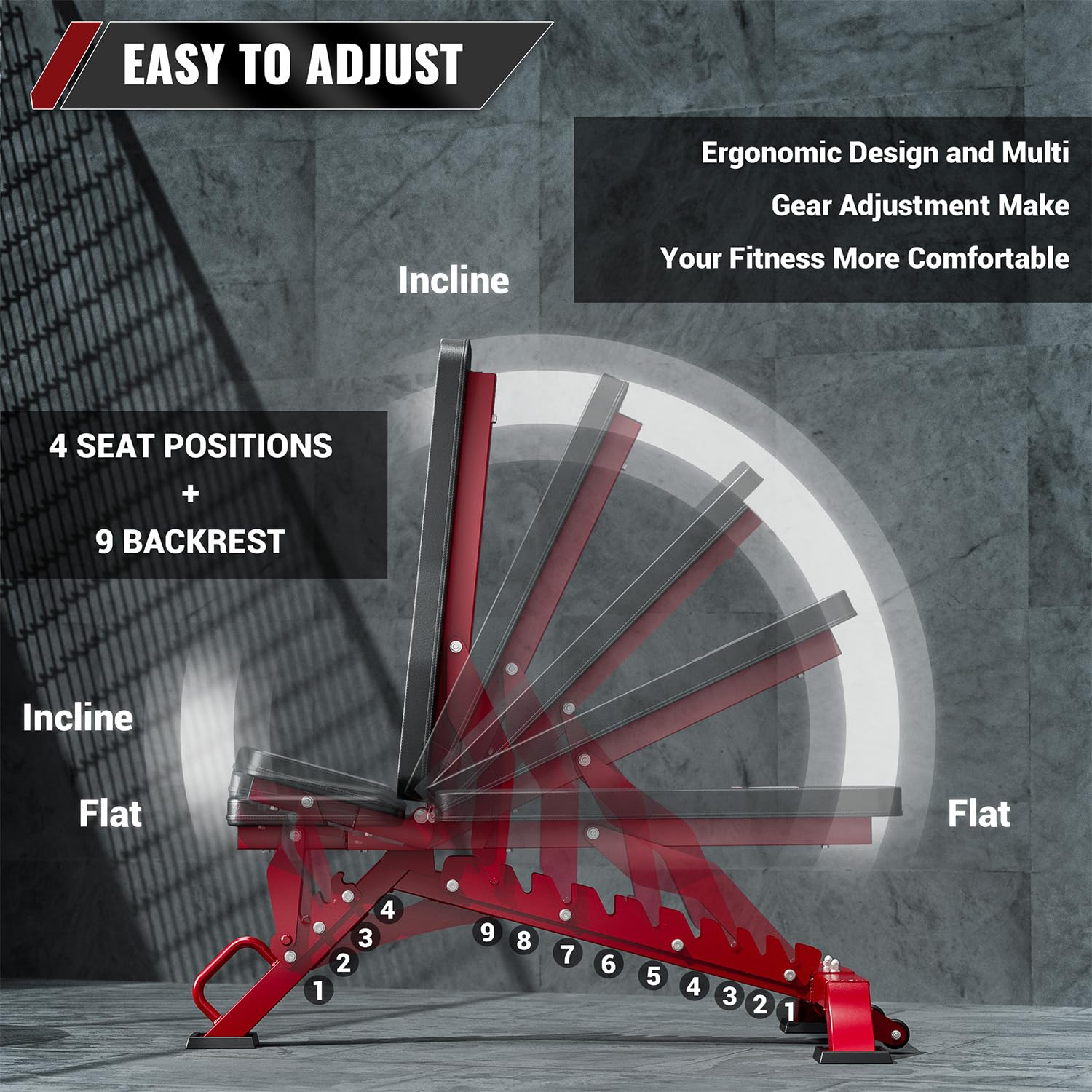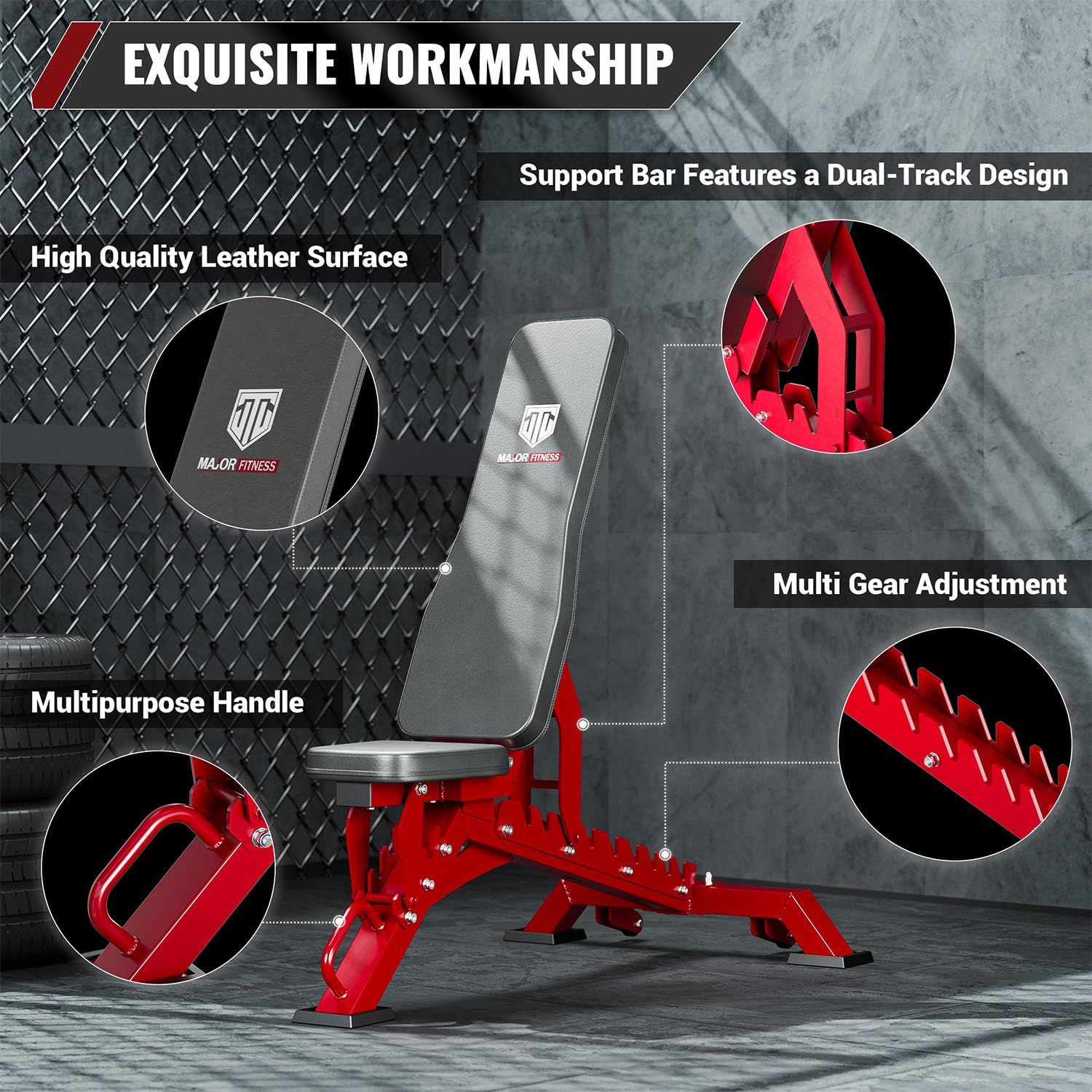 Major Fitness Weight Bench - 1300LBS Weight Capacity and 36 Adjustable Positions Strength Training Bench for Garage and Home Gym Workouts (Red)