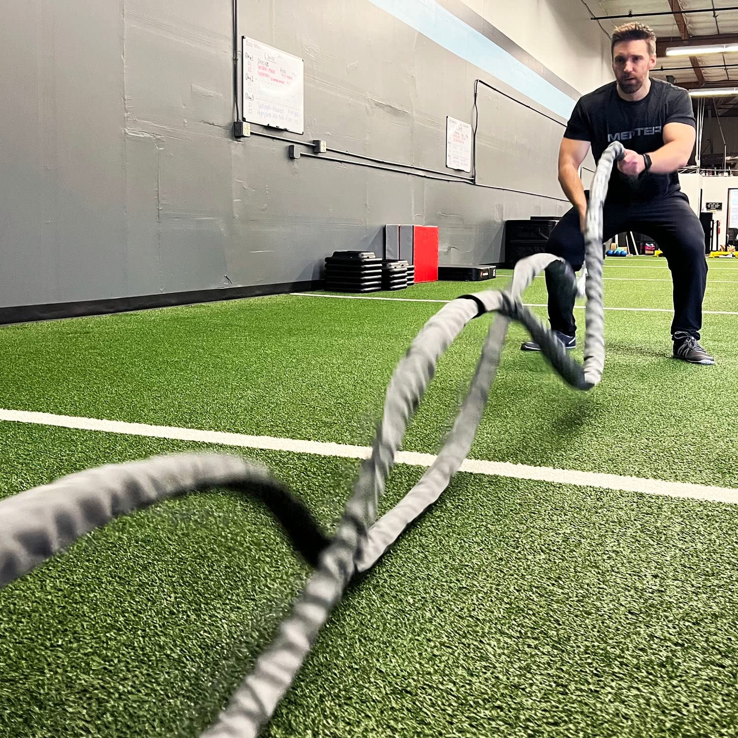 • Thick 7.5" molded handles feature deep finger channels for a secure grip no matter how much you sweat. 30' (9.15m) battle rope length provides the perfect size for intense training and explosive movements to build superior speed and power transfer