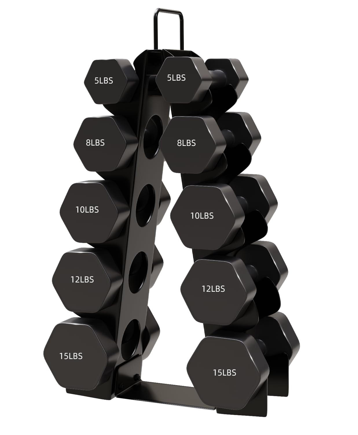 okugafit Dumbbell Rack Stand Only, 5 Tier Compact A-Frame Dumbbell Rack with Upgraded Handle, Weight Rack for Dumbbells, Dumbbell Rack for Home Gym Space (Not Included Dumbbells)