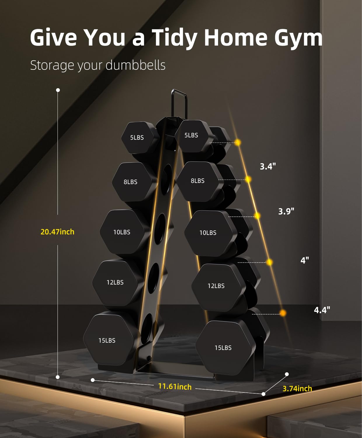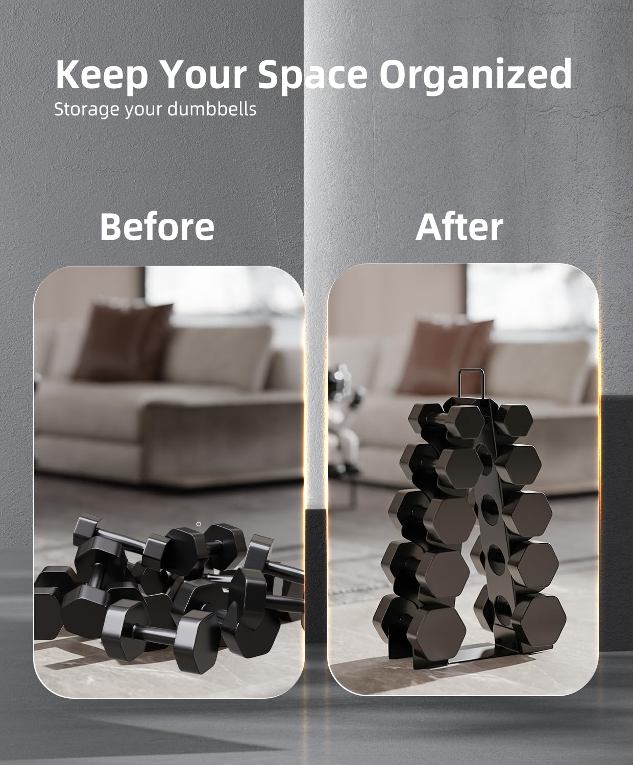 • 【Great Value Dumbbell Rack for Home Gym】With so many options on the market, it is important to find a dumbbell rack that is sturdy and durable but also fits your gym space and budget. No matter if you're for a full body workout or weightlifting, we all know the hassle of not having enough room to work out hard. Compared to expensive large horizontal dumbbell racks which requires a lot of floor space, our A frame dumbbell racks are more affordable and well suited to constraint areas.