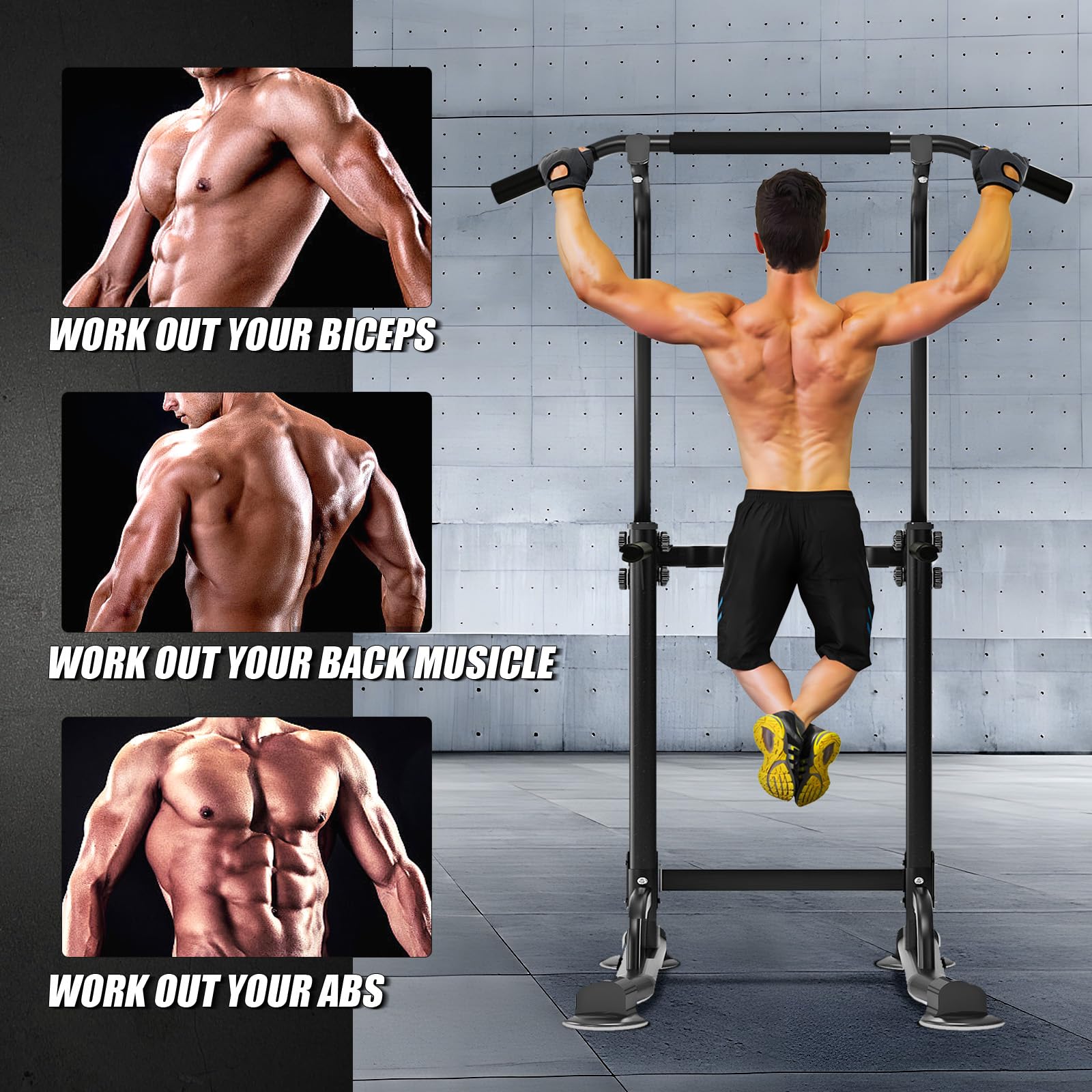 • 10 Levels Height Adjustment: 32.3Lx29.5Wx65~82.7H(inches). Weight capacity: 330LBS. The height of pull up bar can be adjusted from 58.5~82.7". Suitable for all adult fitness needs at home, office. And the lowest level is designed for children and the power tower is suitable for the whole family workout.