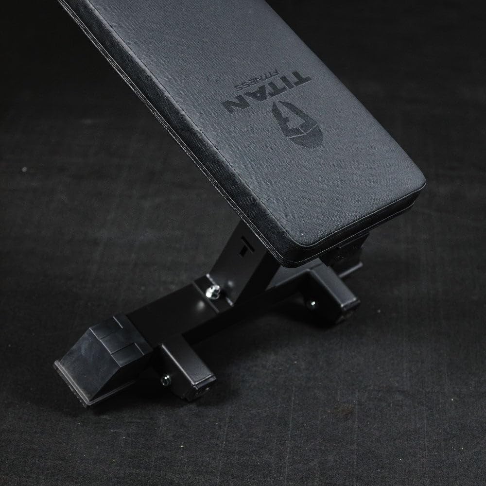 Titan Fitness Elite Series Single Post Flat Bench, 2.5" Thick HeftyGrip Vinyl Pad, Rated 1,000 LB, Dedicated Home Gym Competition Weightlifting & Strength Training Utility Bench