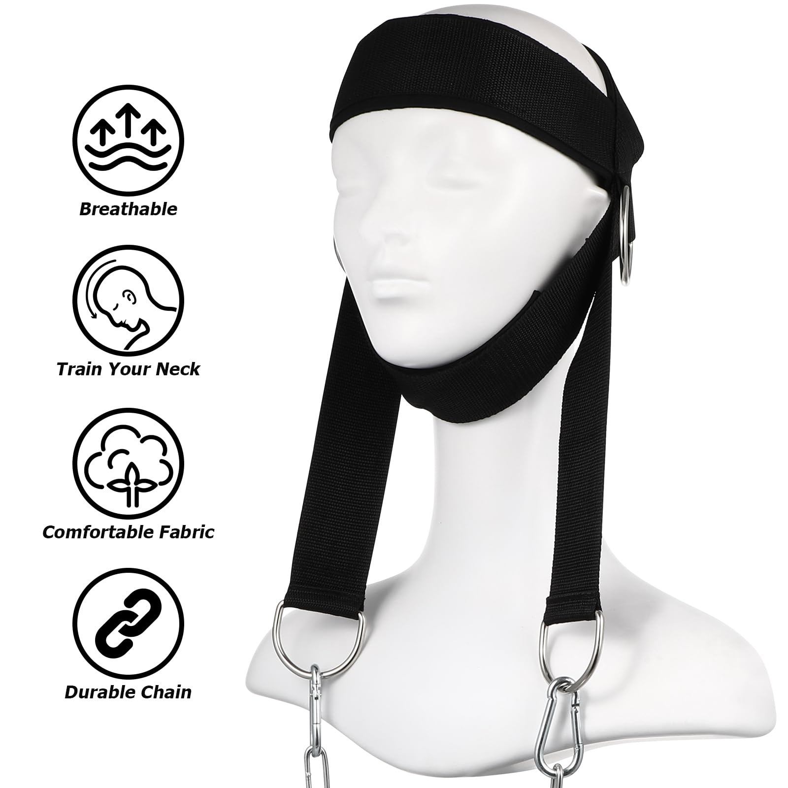 • Neck Trainer: Thick neoprene padding for reduced head discomfort