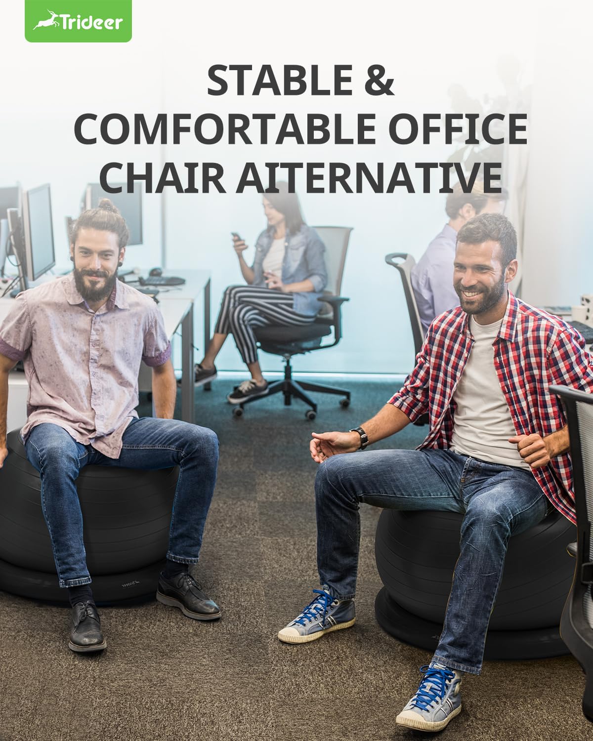 Trideer Exercise Yoga Ball Chair with Base for Home Office Desk, Stability & Fitness Ball Seat to Relieve Back Pain, Home Gym Workout for Abs, Pregnancy Ball with Pump