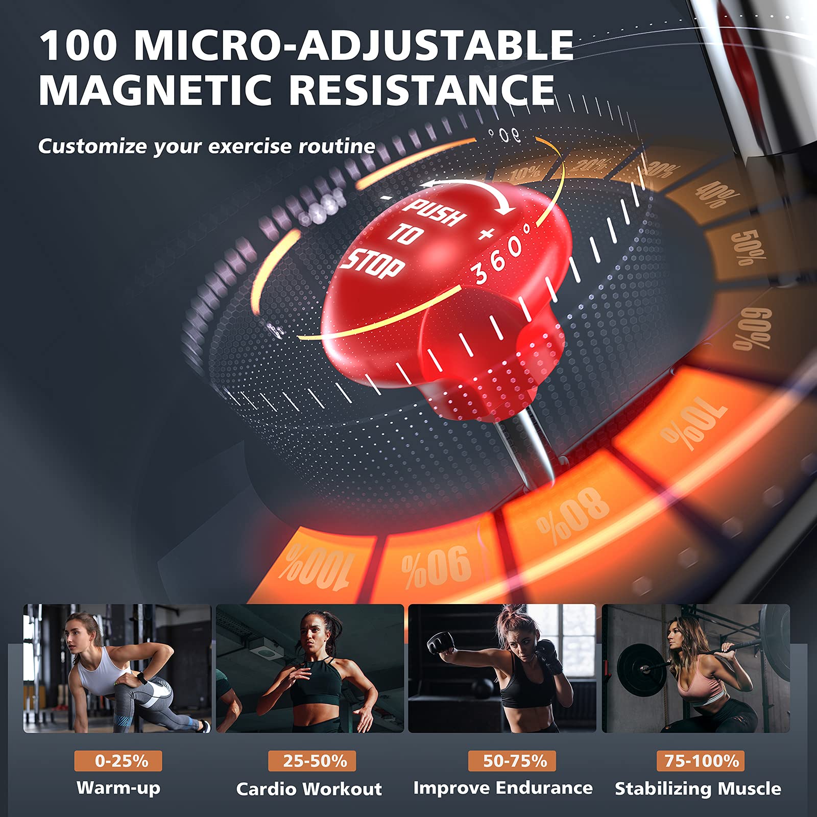 • 40 lbs flywheel with 100 micro-adjustable resistance: 40 lbs flywheel inspires your potential, no matter you’re beginner or fanatic. 100 micro-adjustable magnetic resistance levels, easy to customize exercise routine like burning calories, lose weight