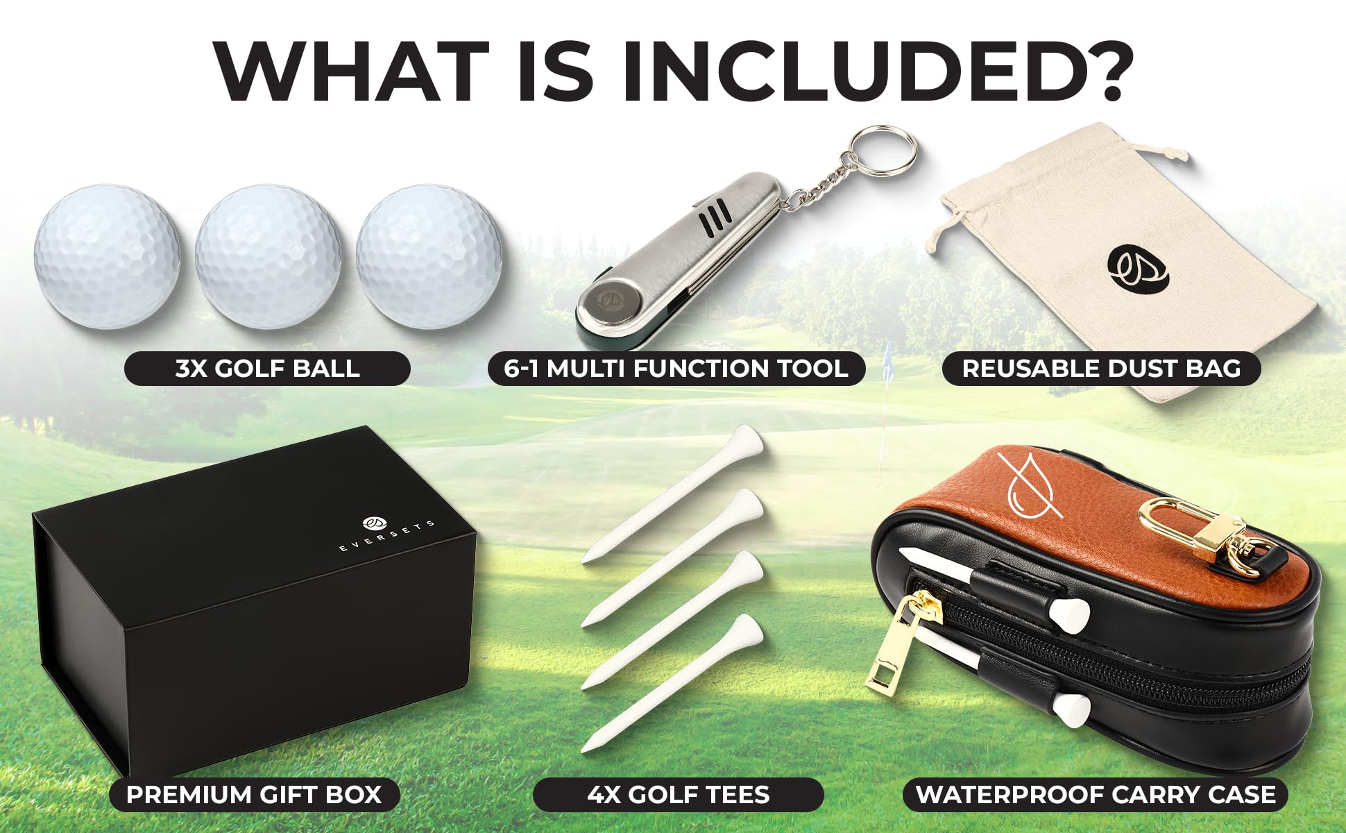 Golf Gift Set - Complete Golfing Accessories for Men & Women, Dad, with 3 Golf Balls, Bag Case, Rangefinder + More