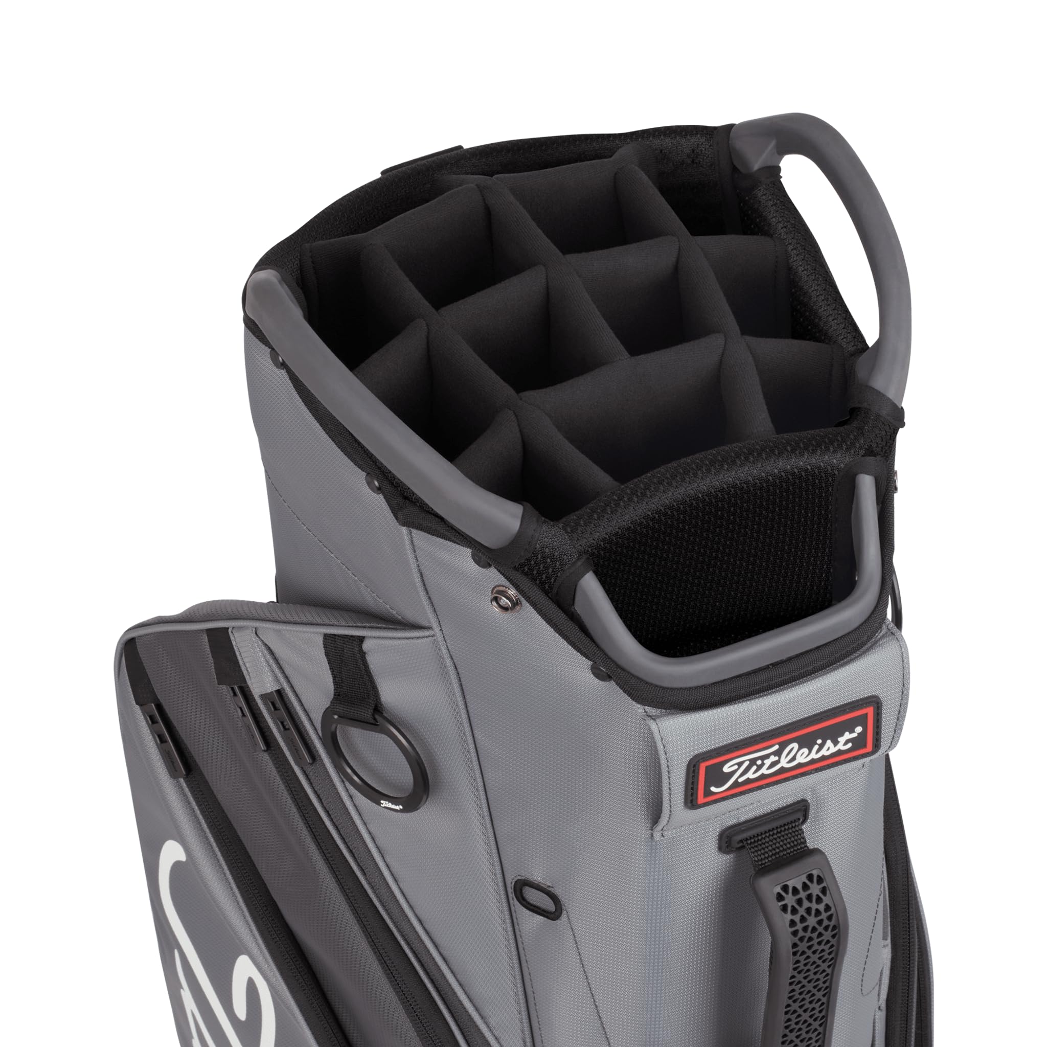 Details: The Cart 14 Bag includes a lightweight, symmetrical design with 10 cart-accessible pockets for improved storage and convenience on the golf course.
