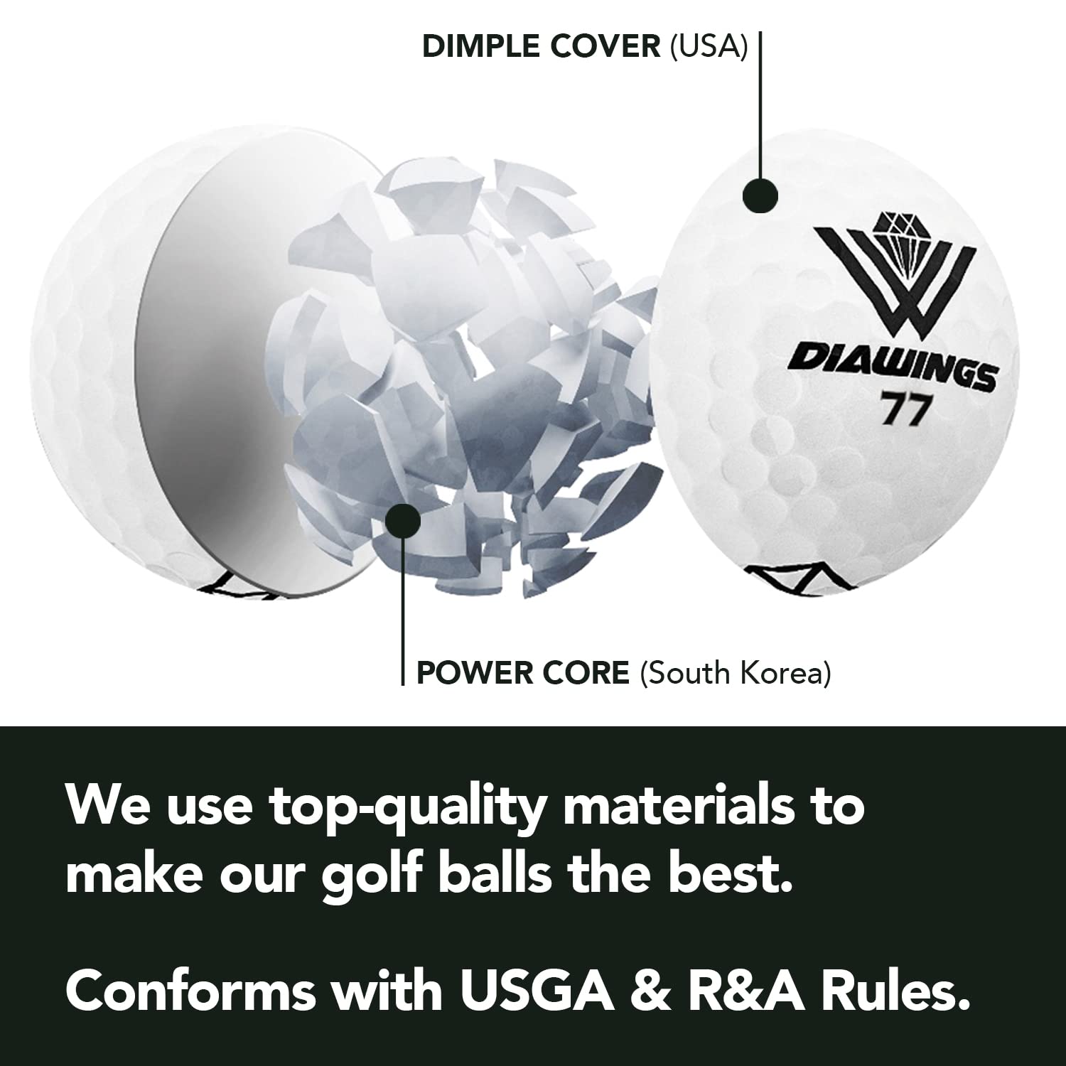 - LONG DISTANCE - Reclaim your lost distance. Diawings Golf Balls' core technology is combination of 90% of Diawings’ COR (coefficient of restitution) and 10% of spring COR of driver face. This combination creates higher COR from a slower swing speed to achieve maximum impact energy.