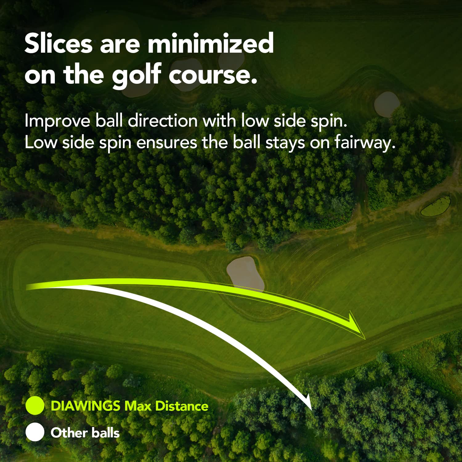 - STRAIGHT SHOOT - Anti Slice and Anti Hook Diawings gains distance by producing extremely low spin which also helps with players with slice problems. When player ‘Slice’ a shot, it increases ‘Side spin’ which resulting overly influenced trajectory. Diawings balls are helpful for every category of player with swing speed under 95 mph man, woman, kids, and senior golfers.
