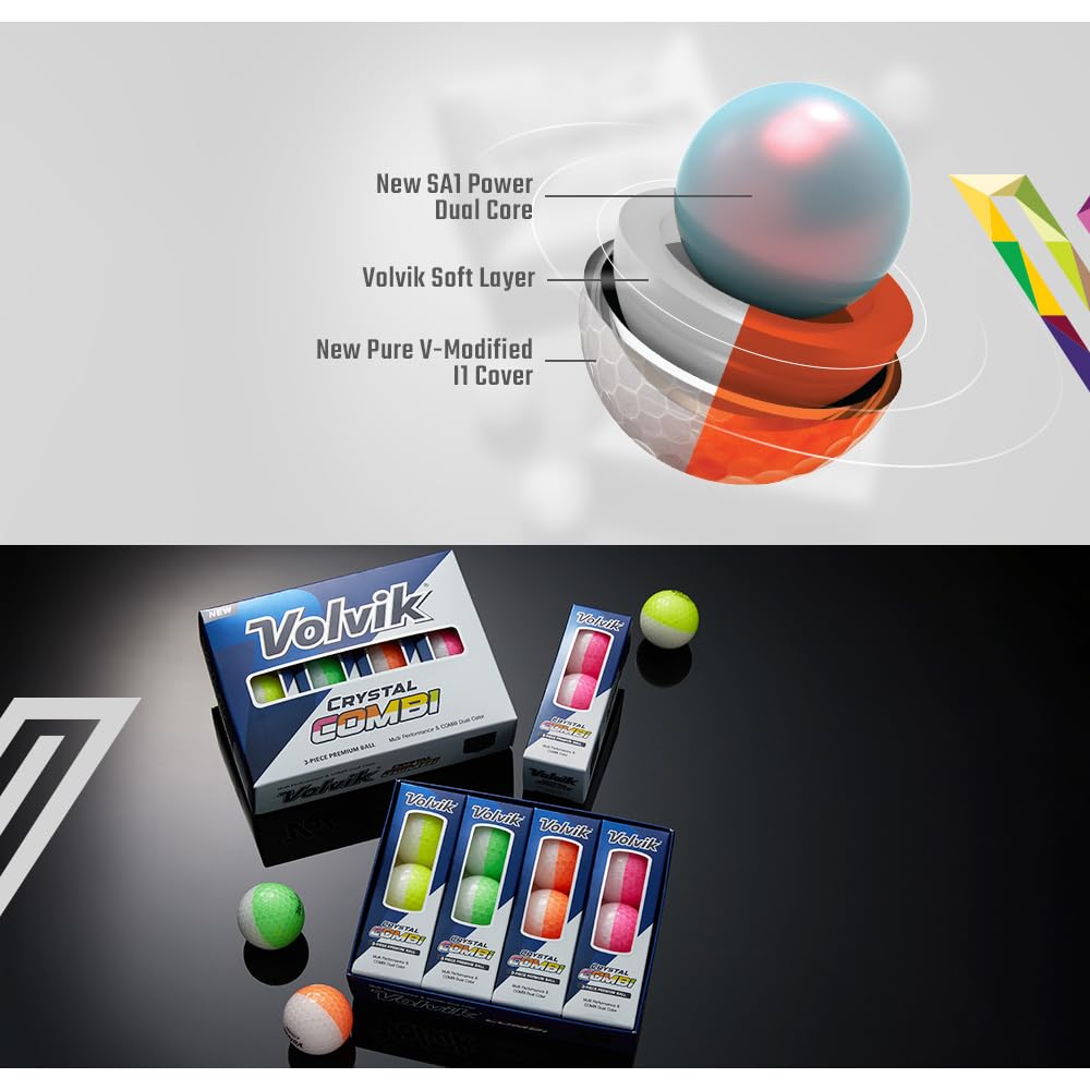 Details: The Volvik Crystal Combi Golf Balls deliver exceptional distance to a new high-elasticity SA1 Power Dual Core and durable, high-velocity V-Modified I1 Cover.