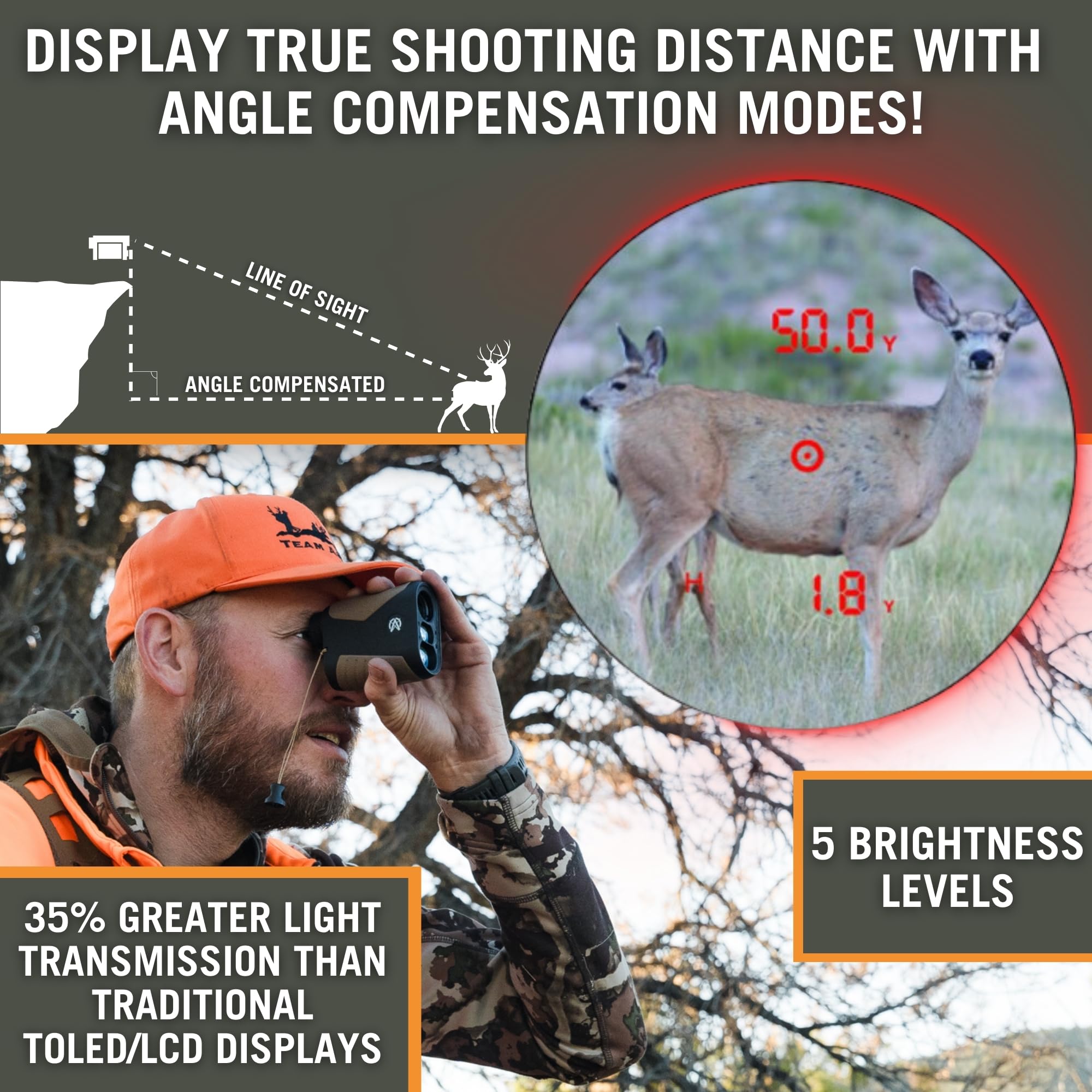 REDTIGER Range Finder Golf, 1200 Yards Golf Rangefinder with Slope, Light-Adaptive Display, 7X Magnification