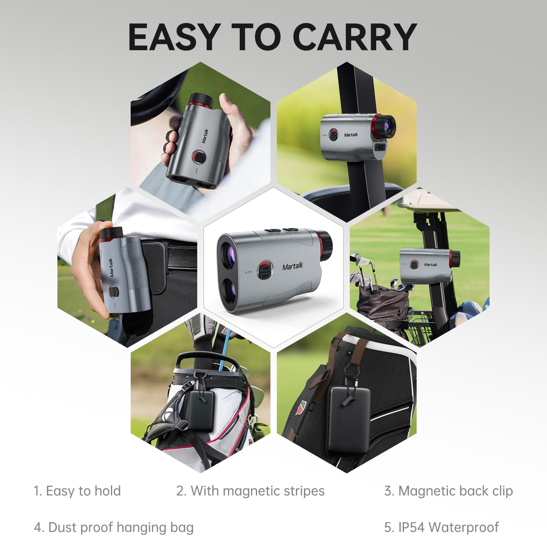 • Martalk Full-Featured Golf Rangefinder: Features slope switching, magnetic mount, up to 1200 yards range, and USB-C charging, suitable for golf, hunting, and bowhunting