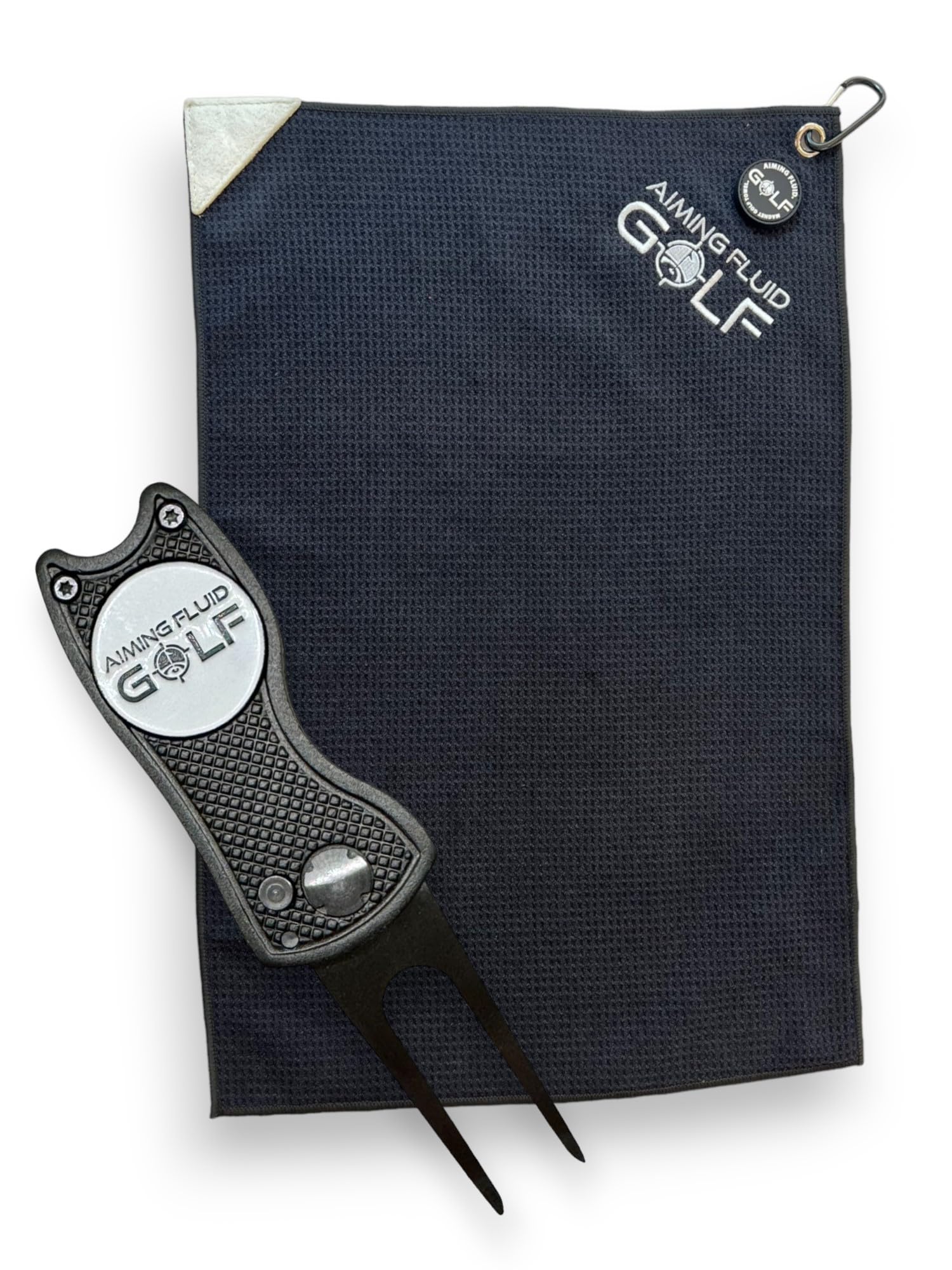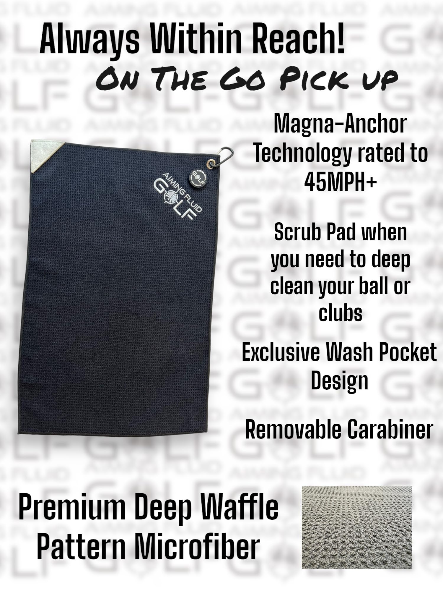 Aiming Fluid Golf Multi-Function Magnetic Golf Towel I Exclusive Wash Pocket I Magna-Anchor Technology w/Magnetic Ball Marker