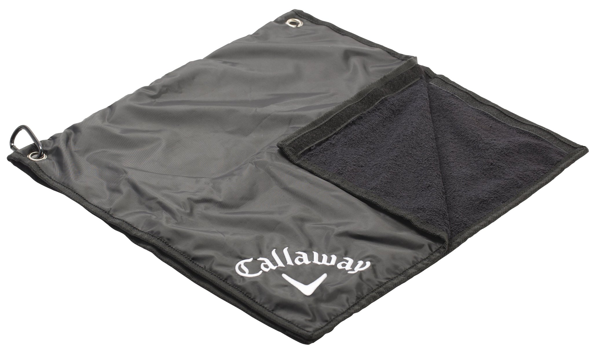 The Callaway Rain Hood Towel is the perfect combination. Constructed of waterproof nylon and cotton (internal towel), it easily slips over the top of most golf bags to keep your clubs and grips dry. Features Velcro sides for convenient access to clubs. Conveniently hang off your golf bag with the included carbineer clip.