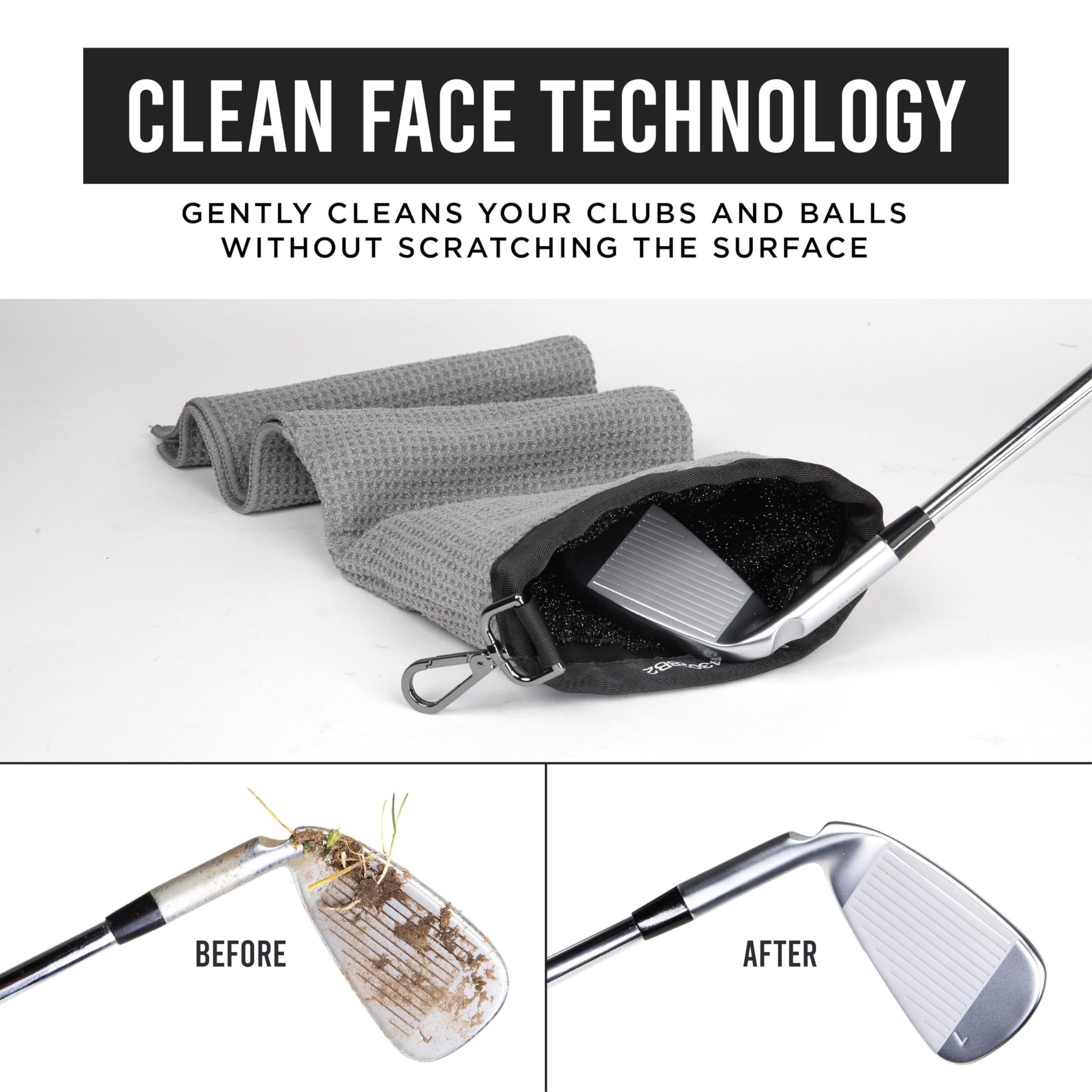 - CLEAN FACE TECHNOLOGY The Club Scrub Towel Pro utilizes Clean Face Technology that gently cleans your clubs and balls without scratching the surface to ensure proper contact, spin, flight, and roll with every stroke.